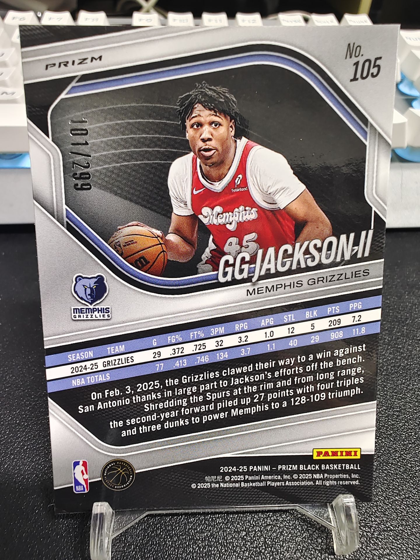 【浩行拍卖 截标预付82%】2024-25 Panini Prizm Black GG Jackson II 灰熊 GG 杰克逊二世 红折 折射 101/299编 专收必备 瑕疵看图「树新」1112E05恁