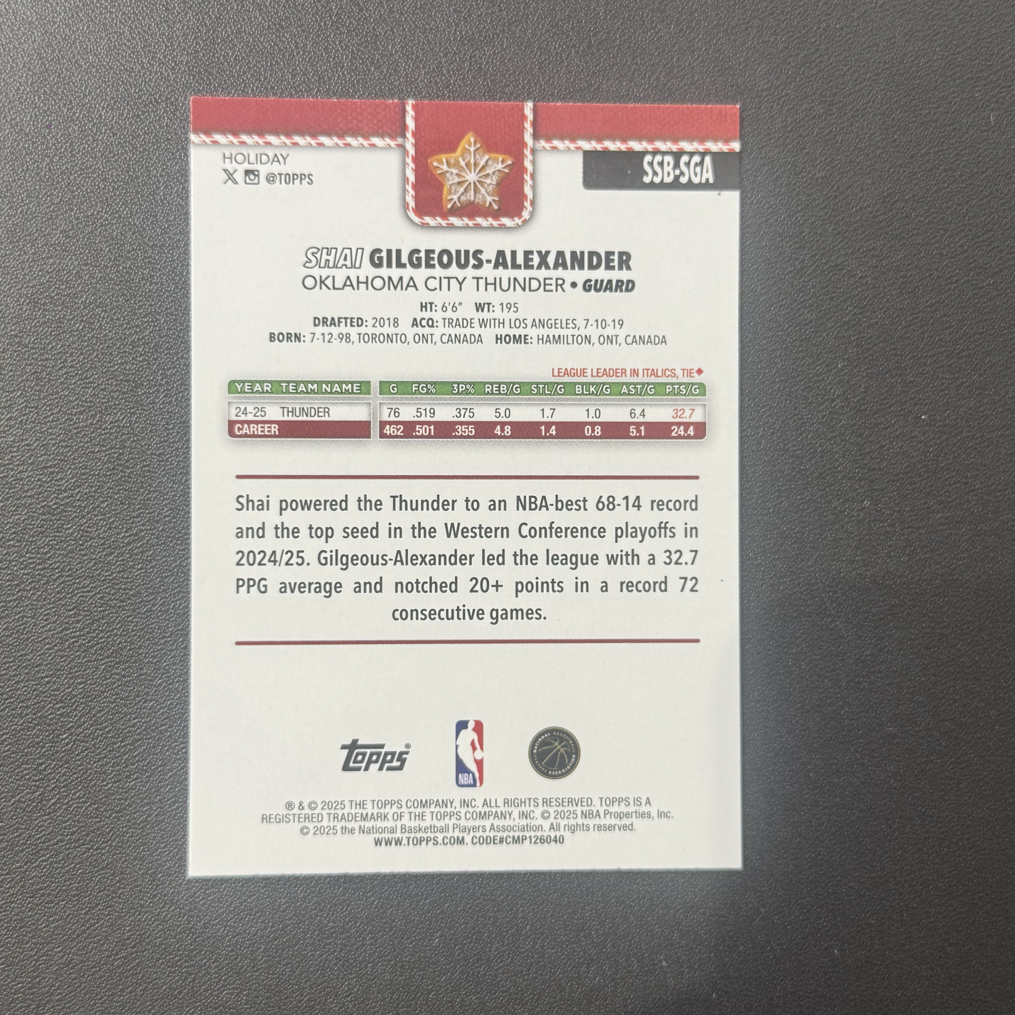 2025-26 Topps HOLIDAY Shai Gilgeous-Alexander 【猴猴旺卡】雷霆 谢伊 吉尔杰斯 亚历山大 大比例 红背 雪花 卡品如图 接代拍 12a 【WXZ】