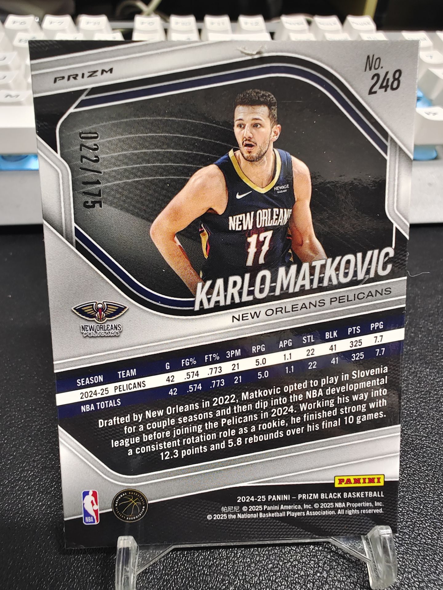 【浩行拍卖 截标预付82%】2024-25 panini prizm black karlo matkovic 鹈鹕 卡尔洛 马特科维奇 RC 新秀 白折 折射 22/175编 专收必备 瑕疵看图「树新」1112E05恁