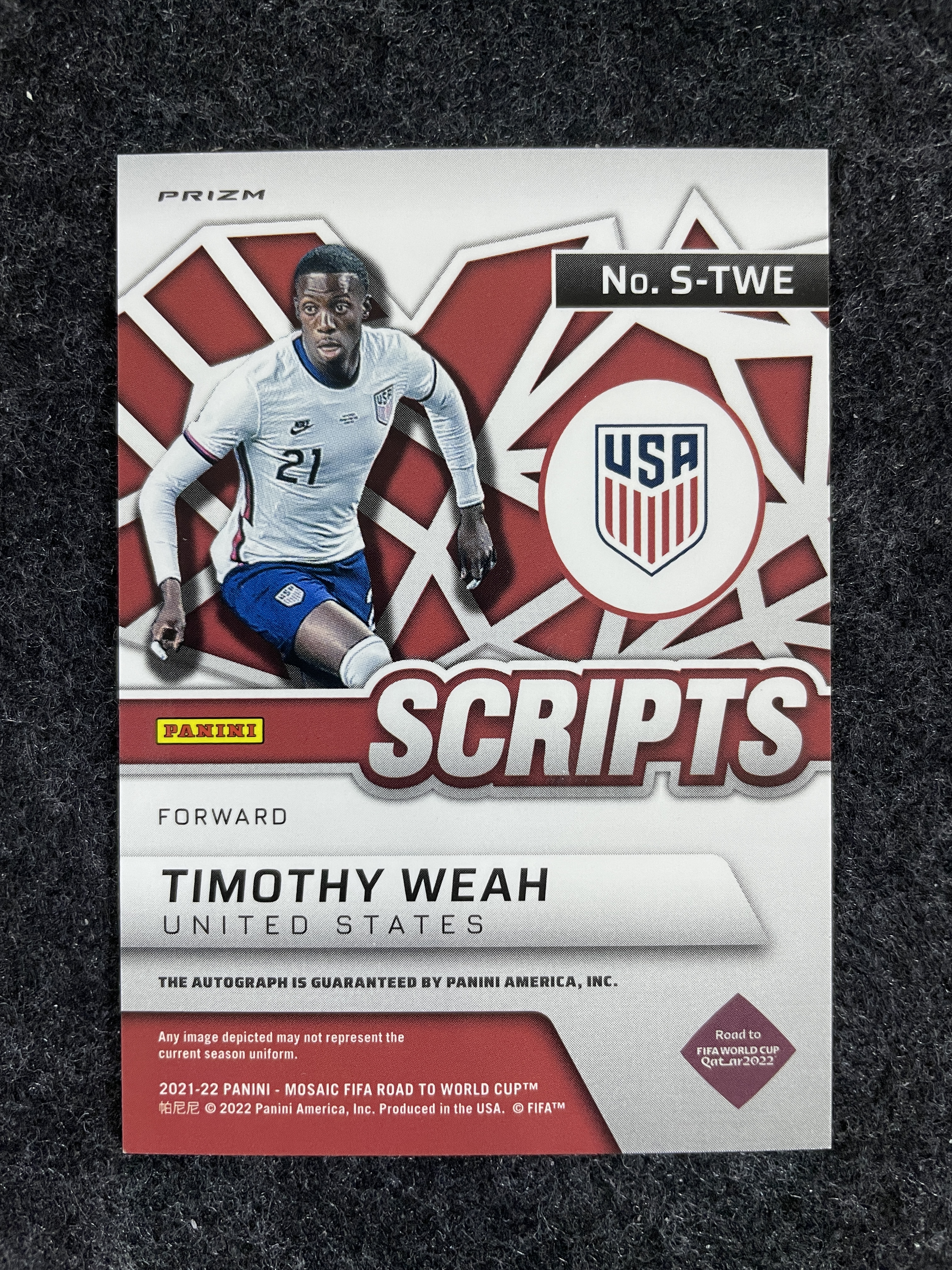 【阿木代拍234栋】2021-22 Panini Mosaic 世界杯之路马赛克 USA美国 Timothy Weah 维阿 签字 马赛克折 折射 尤文图斯