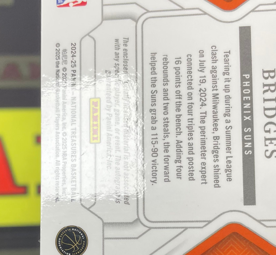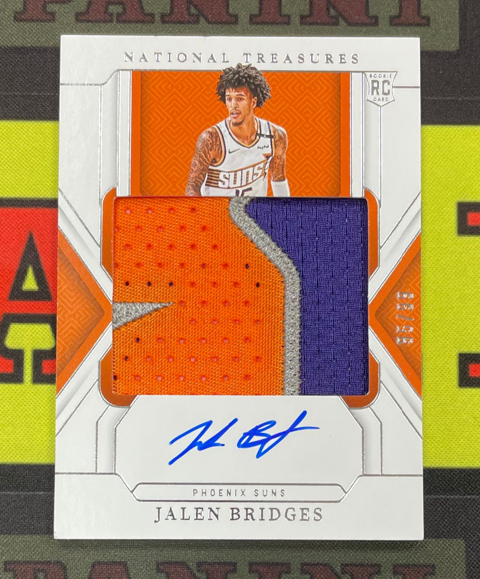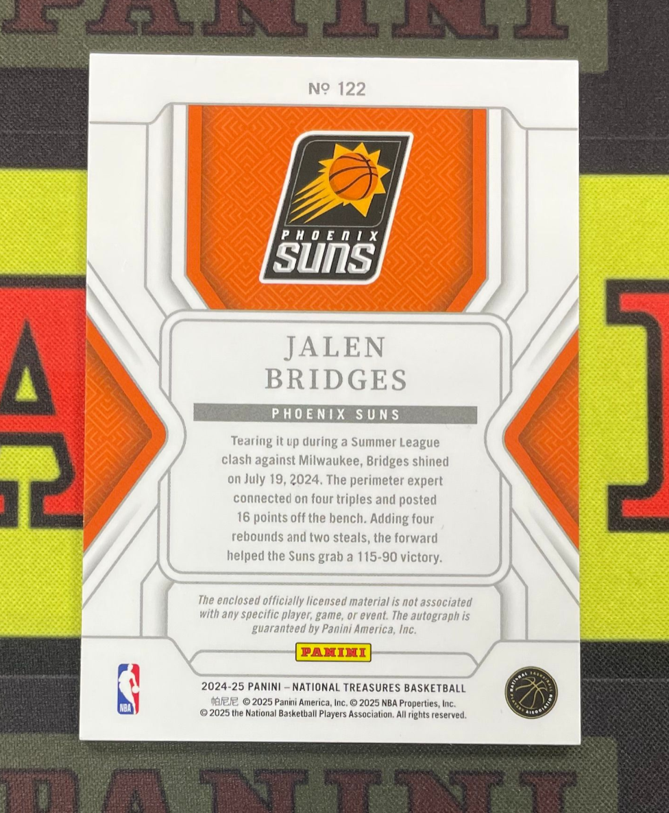 【算盘拍卖】2024-25 Panini National Treasures Jalen Bridges RC 太阳 凯尔特人 杰伦 布里奇斯 95/99编 新秀国宝正RPA 暴力切割大窗patch签字 卡签 墨迹完美 微瑕如图(浪崽)