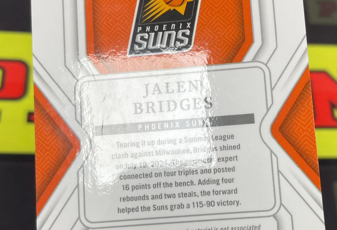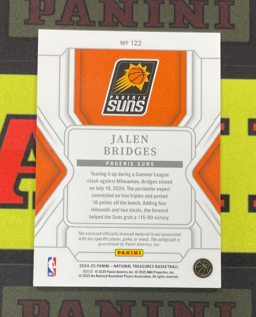 【算盘拍卖】2024-25 Panini National Treasures Jalen Bridges RC 太阳 凯尔特人 杰伦 布里奇斯 09/99编 新秀国宝正RPA 暴力切割大窗patch签字 卡签 墨迹完美 微瑕如图(浪崽)