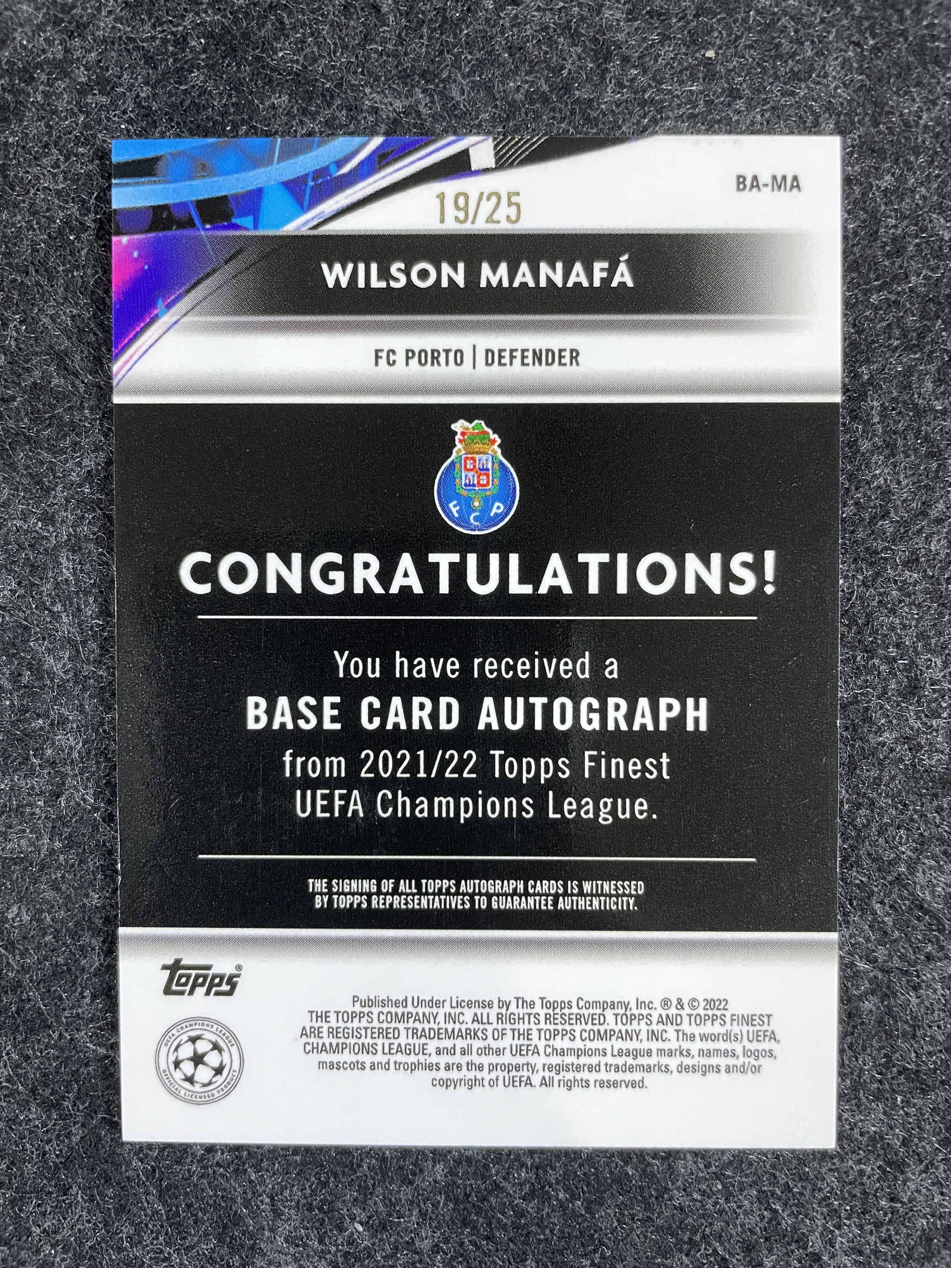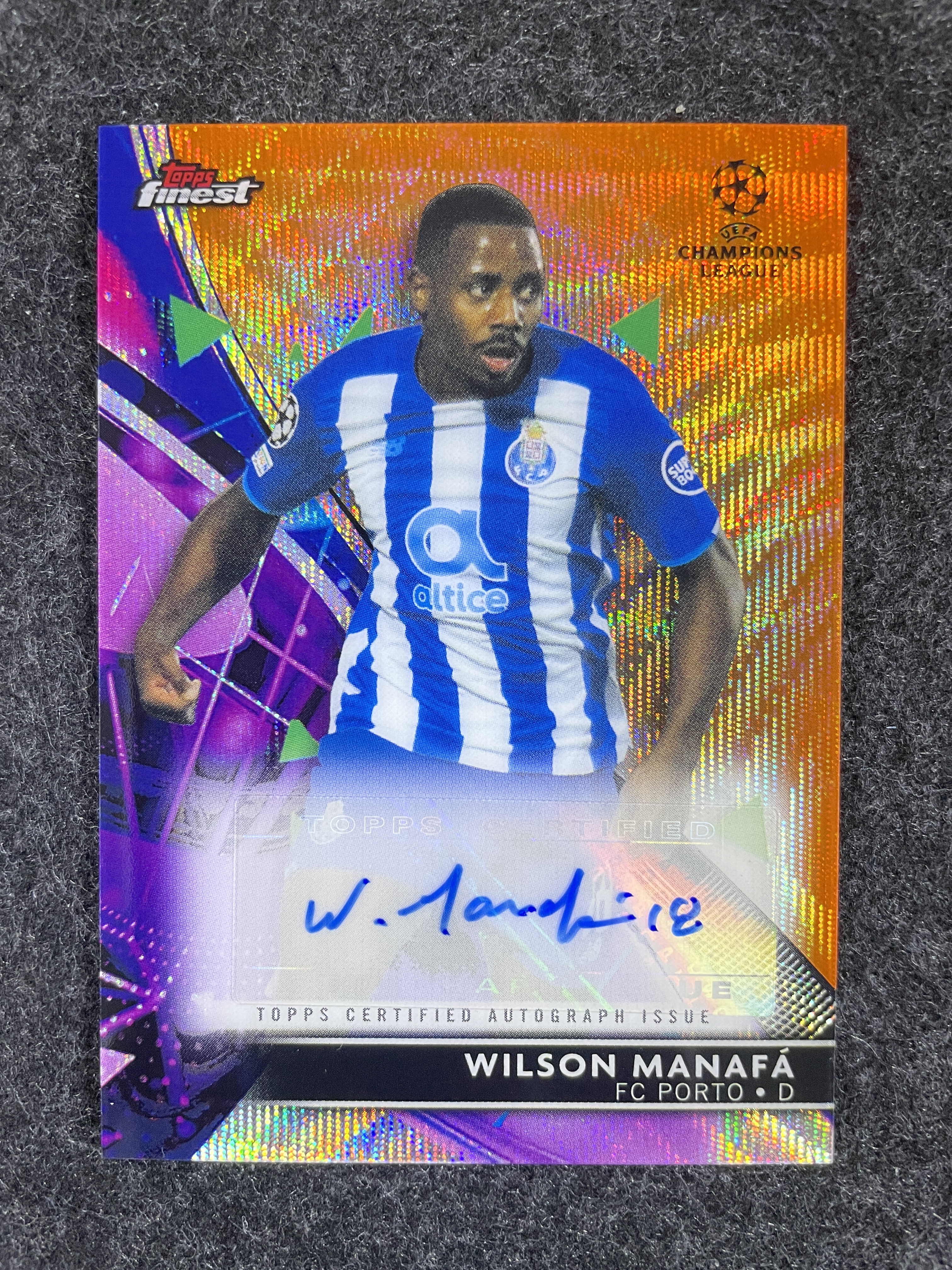 【阿木代拍234栋】2021-22 Topps Finest 欧冠 波尔图 Wilson Manafa 威尔逊 马纳法 签字 橙波纹折 19/25编 上海申花