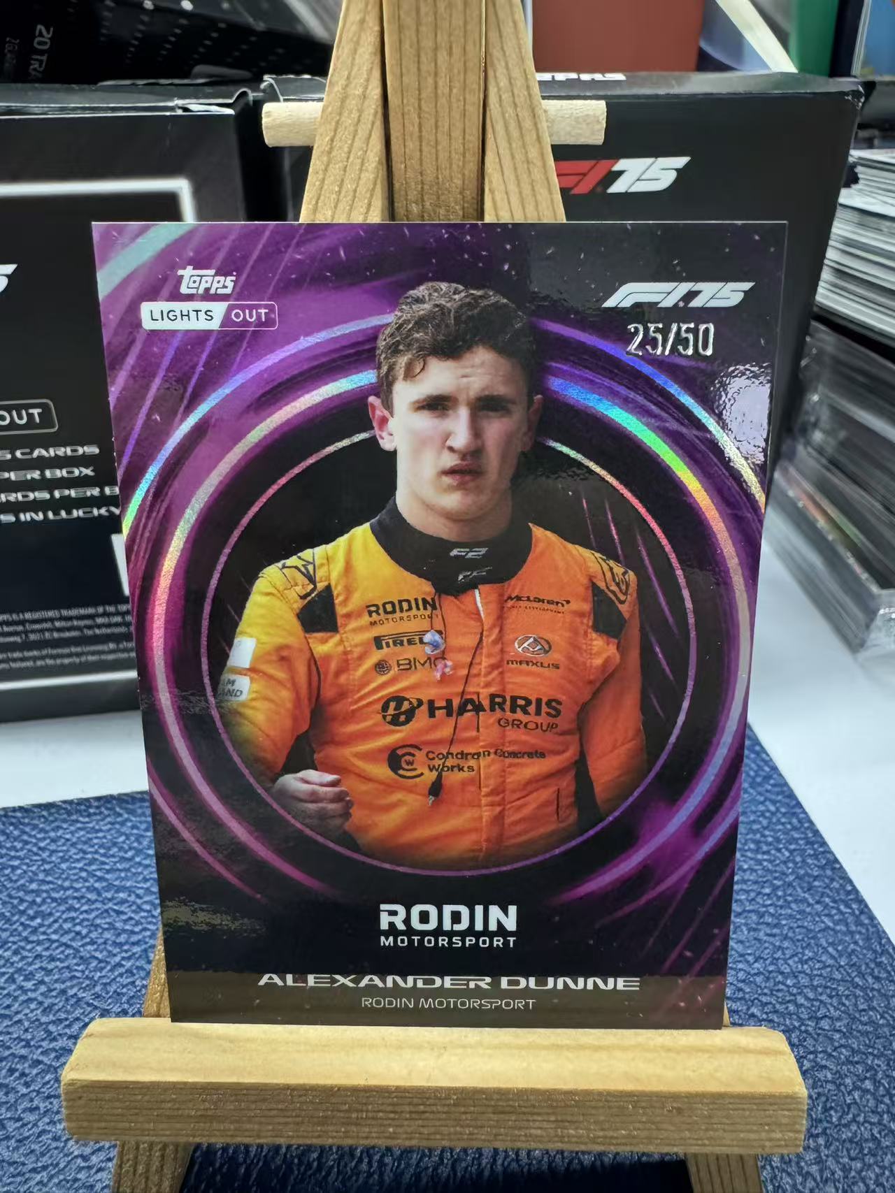 Topps F1 Lights Out 2025熄灯系列ALEXANDER DUNNE 邓恩 赛车手特卡RODIN MOTORSPORT 25/50限量编号品相完好,带卡膜保护适合F1车迷和收藏爱好者