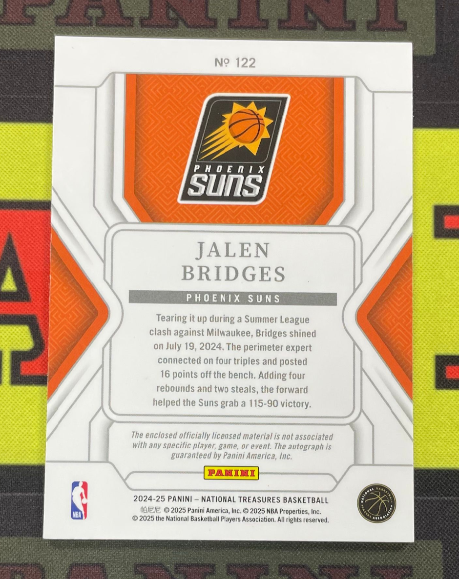 【算盘拍卖】2024-25 Panini National Treasures Jalen Bridges RC 太阳 凯尔特人 杰伦 布里奇斯 2/3编 新秀国宝RPA 大窗超暴力切割耐克大钩子签字 卡签 墨迹完美 微瑕如图(浪崽)