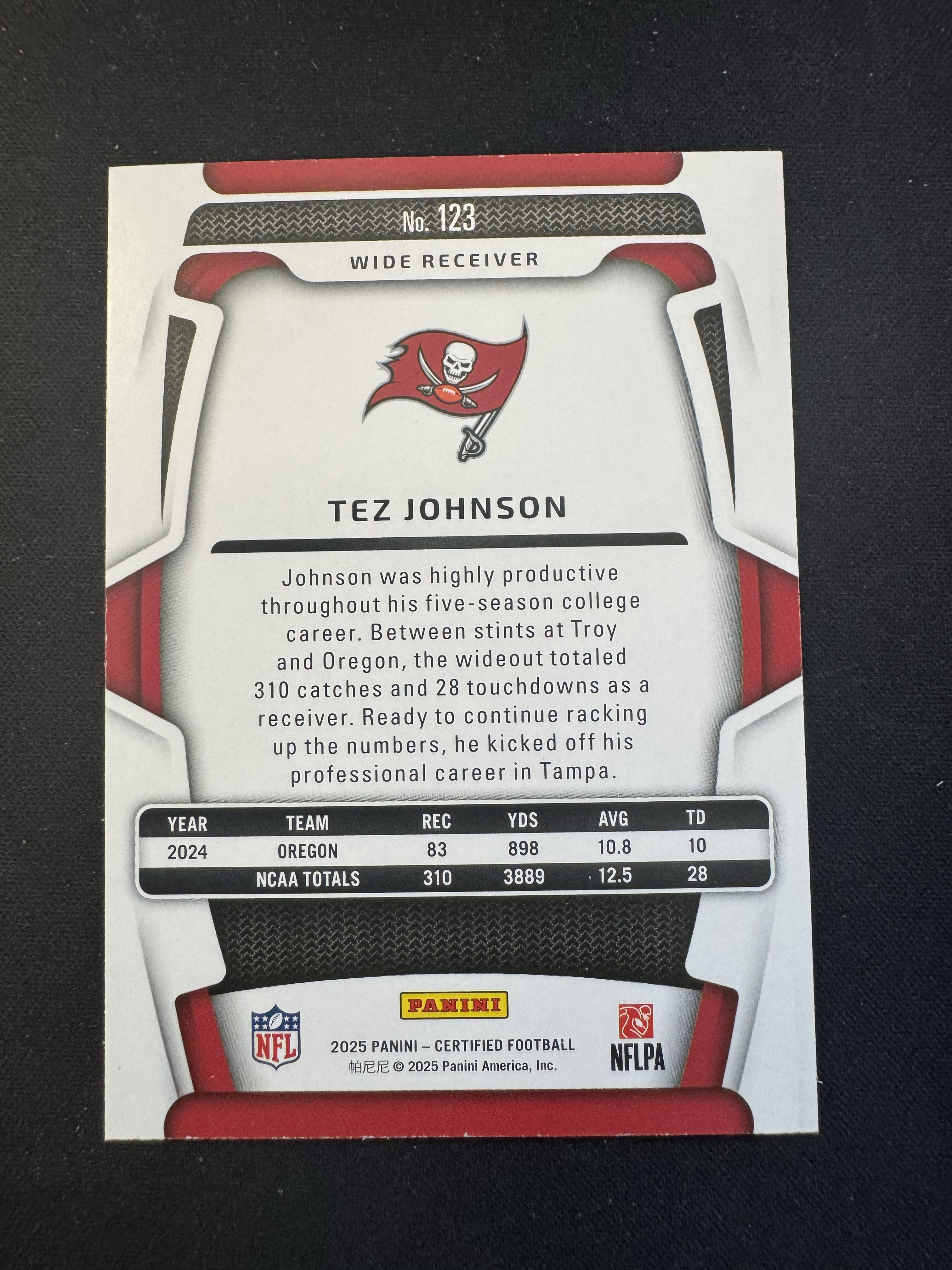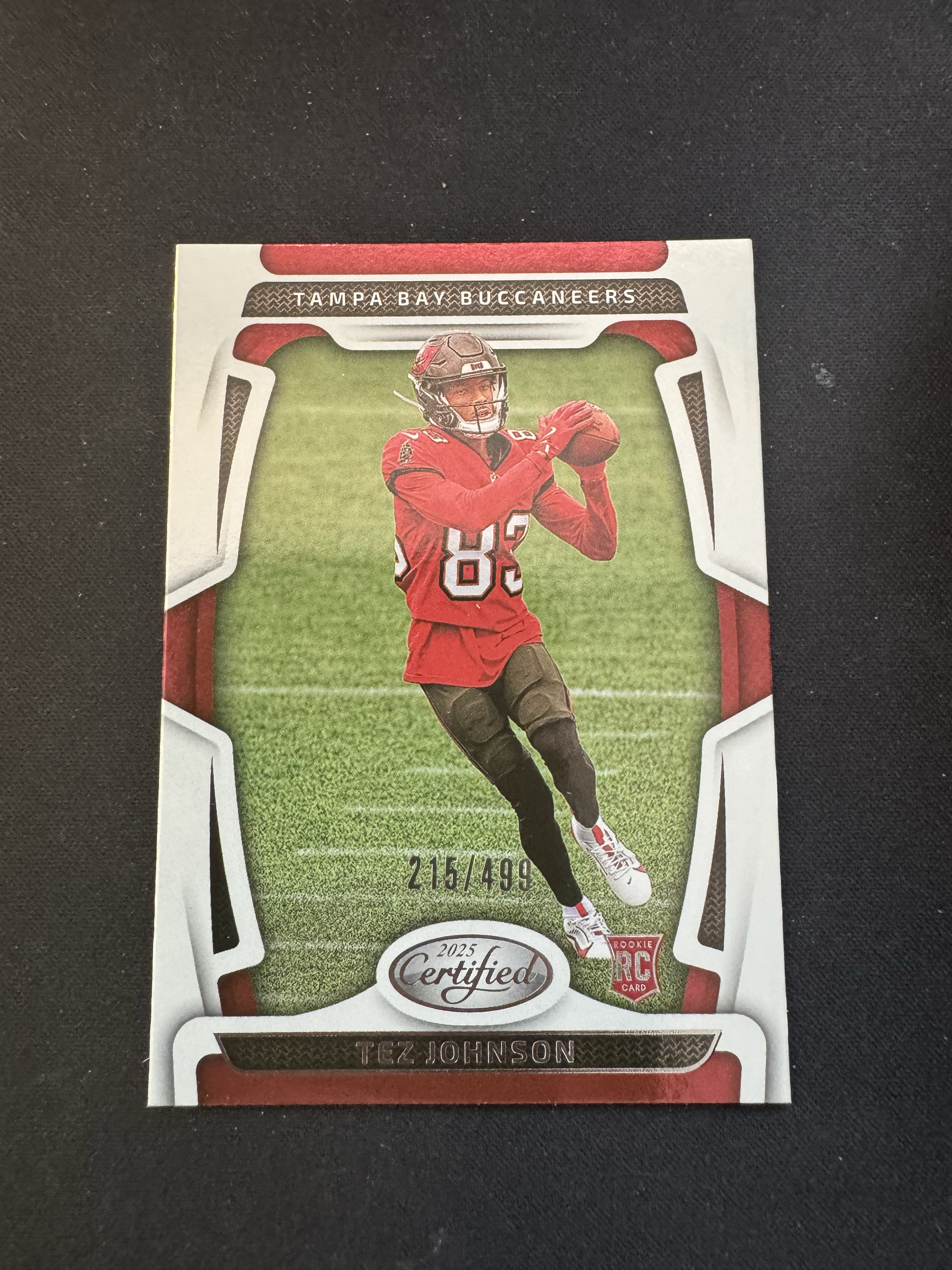 2025 Panini Certified Tez johnson RC 【农夫】NFL 橄榄球 卫生巾 特兹 约翰逊 海盗 新秀 215/499编 折射 卡品如图 《皓1112