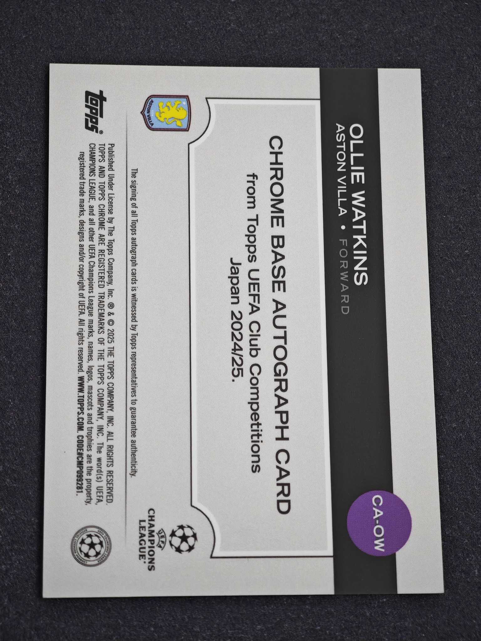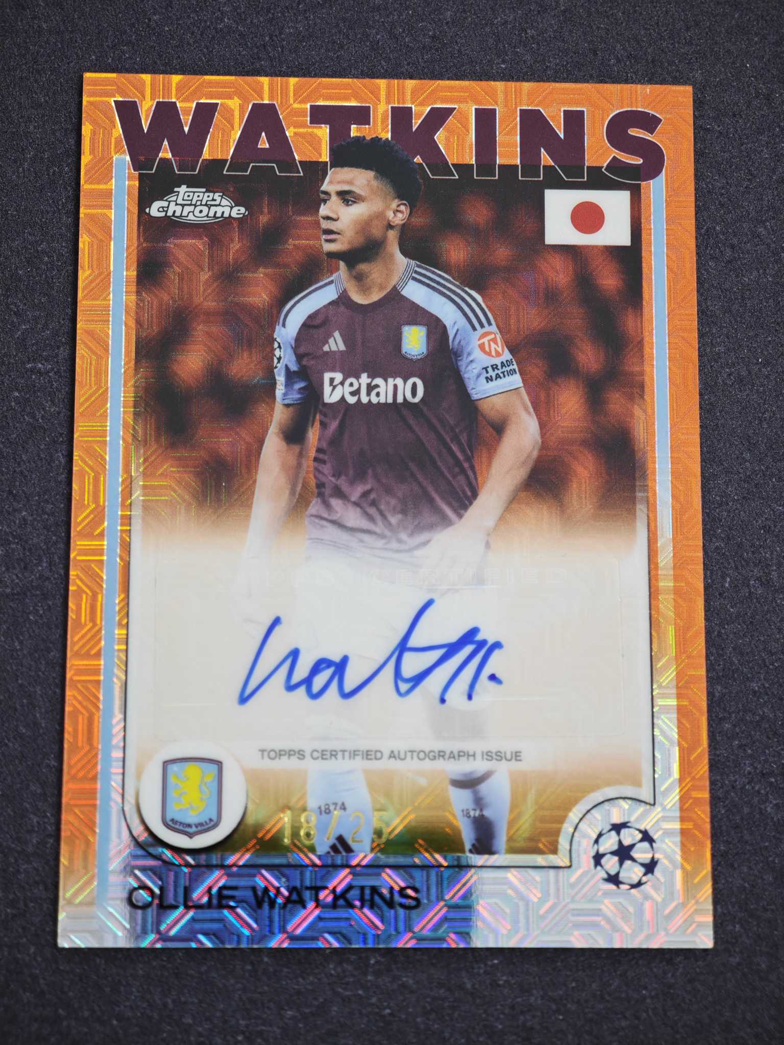 2025 Topps Chrome Ollie Watkins 【小灰机】欧冠TC 樱花 日版 阿斯顿维拉 沃特金斯 橙mojo折 橙迷宫折 18/25编 签字 墨迹如图 卡品微瑕如图 收藏必备 安然