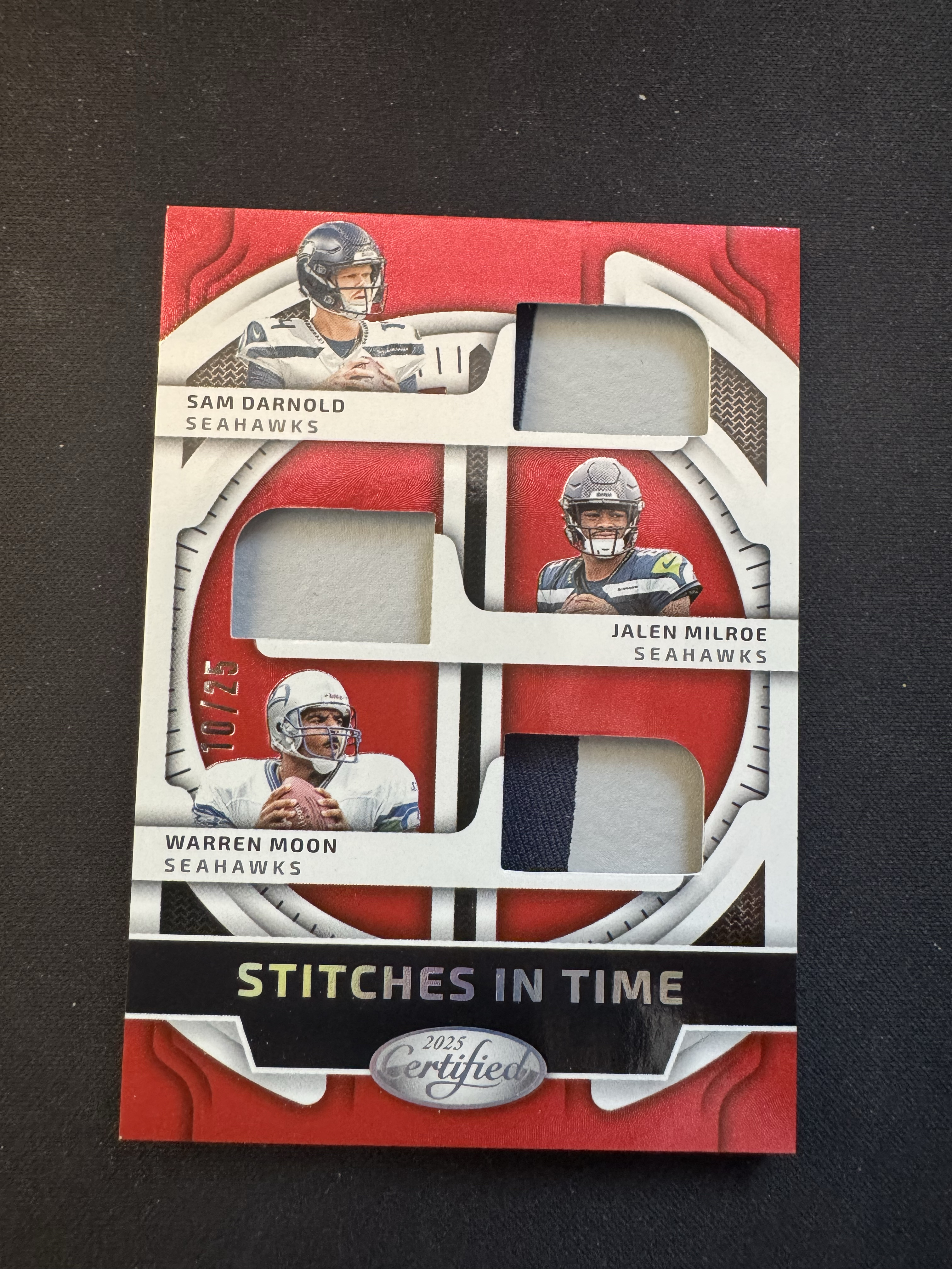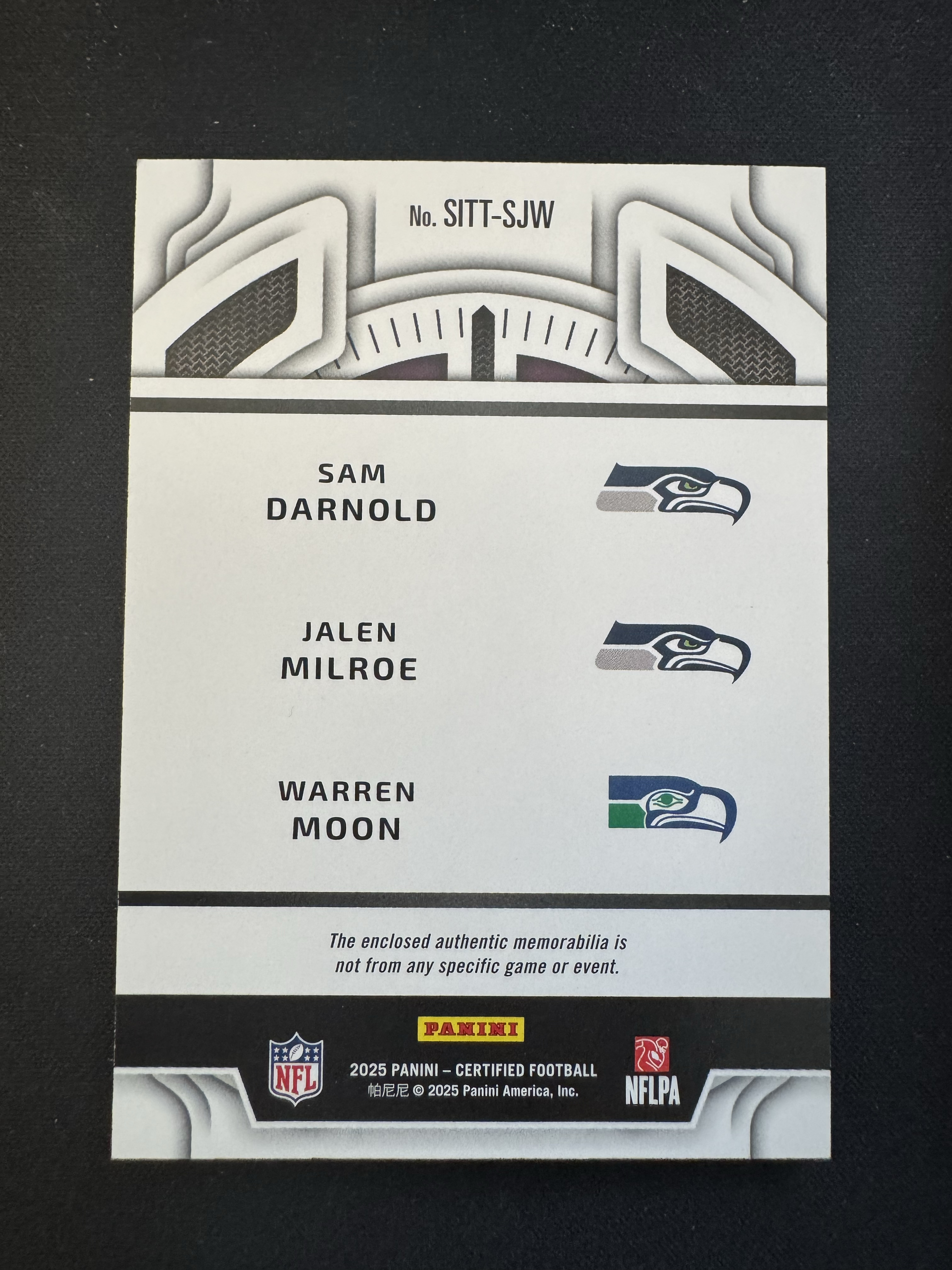 2025 Panini Certified Sam Darnold 农夫】卫生巾 三人球衣卡 物料 切割 Jlen Milroe Warren Moon 海鹰 10/25编 低编卡品如图 《皓1112