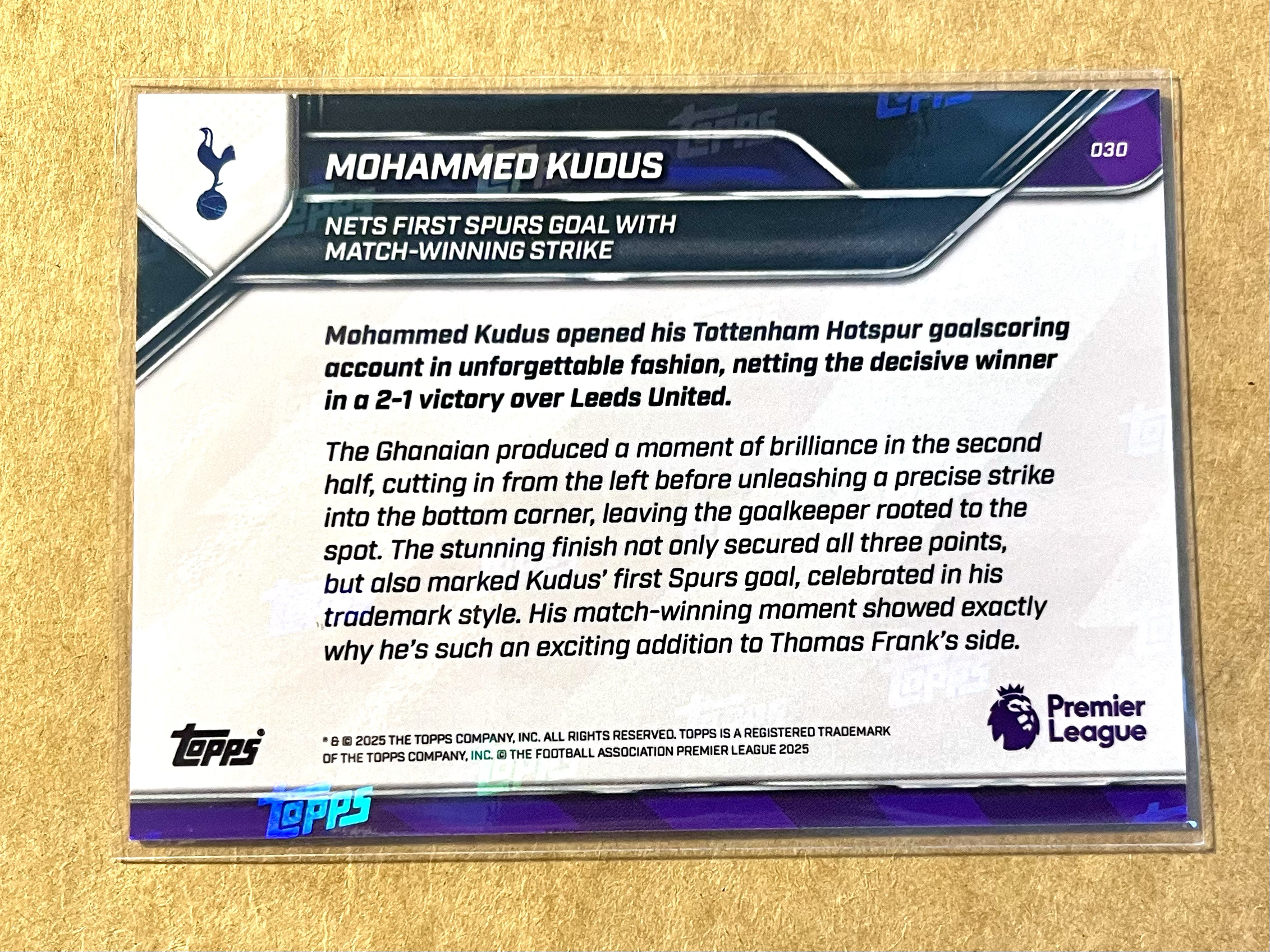 2025 Topps 【蓝矿】 Mohammed Kudus 库杜斯 Topps now系列 英超 热刺 加盟后的首个联赛进球,帮助球队客场取走三分!