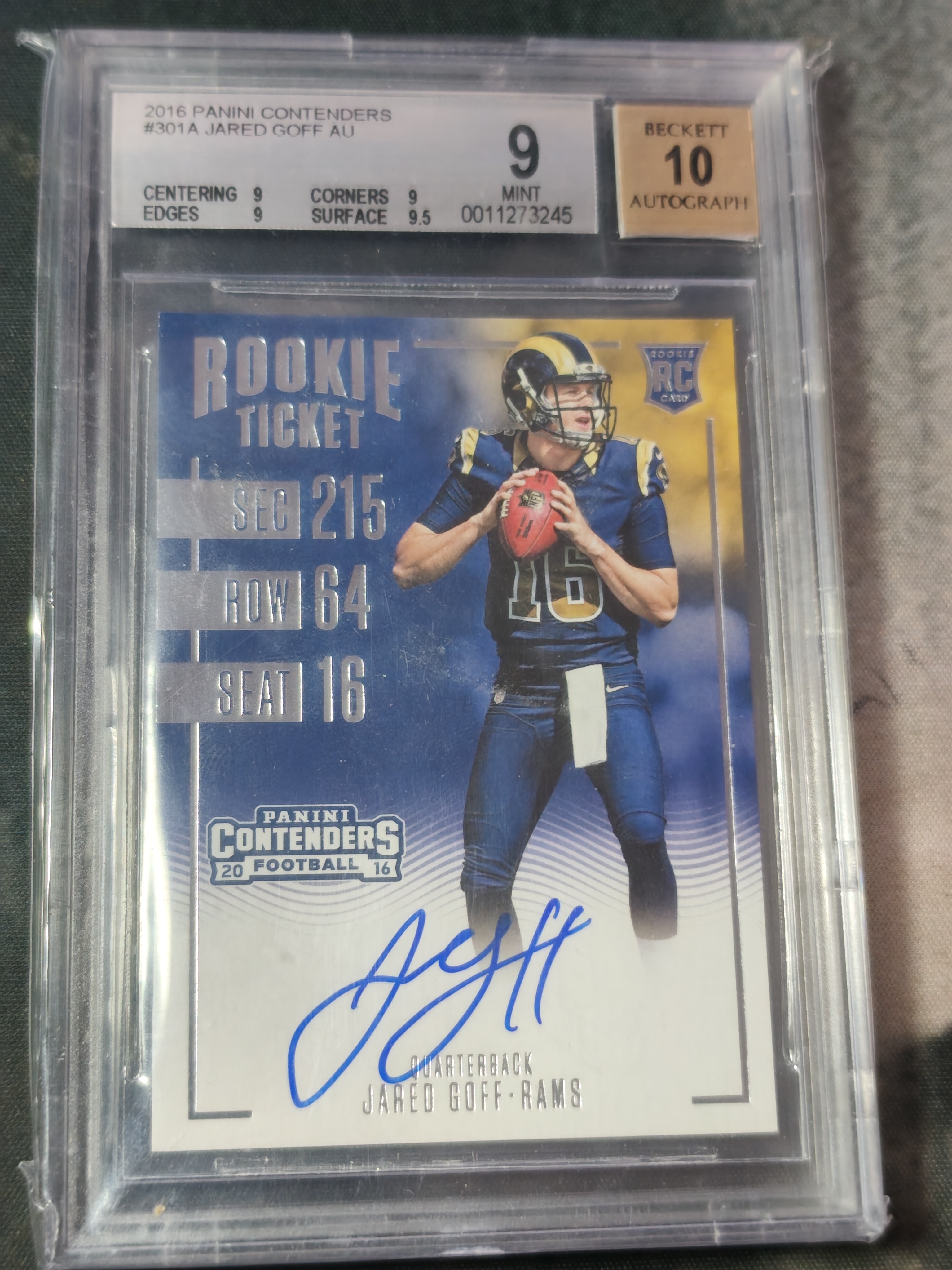 2016 Panini Contenders Jared Goff RC 不累计不到付!公羊 四分卫 新秀年 状元 贾里德 高夫 球票卡签 签字 bgs 9/10签字10分