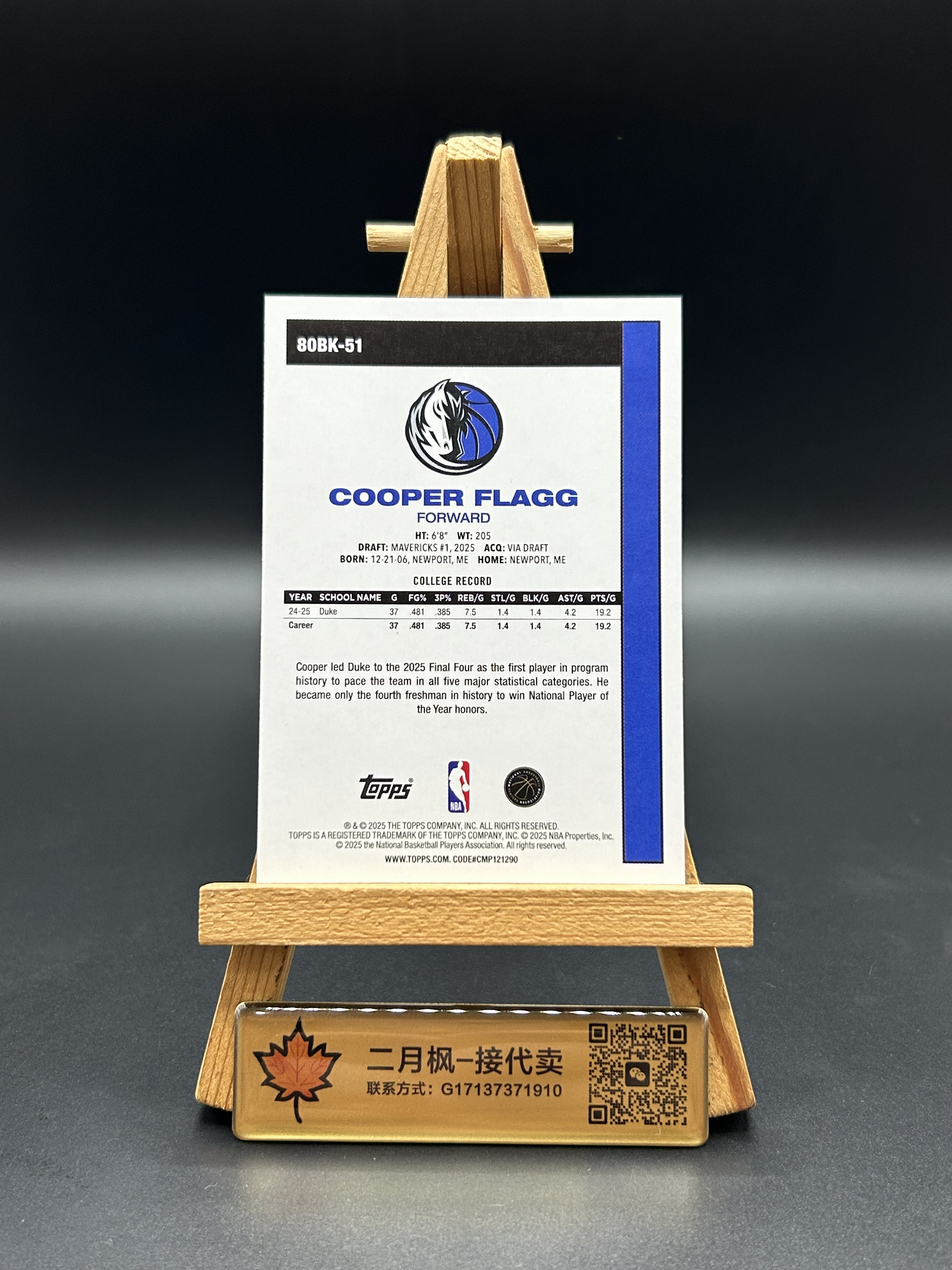 【二月枫-承接代卖】2025 Topps 独行侠 Cooper Flagg 库珀 弗拉格 新秀RC 45周年复古 特卡 状元秀 美国之子 专收凑套必备 #海林姆巴佩