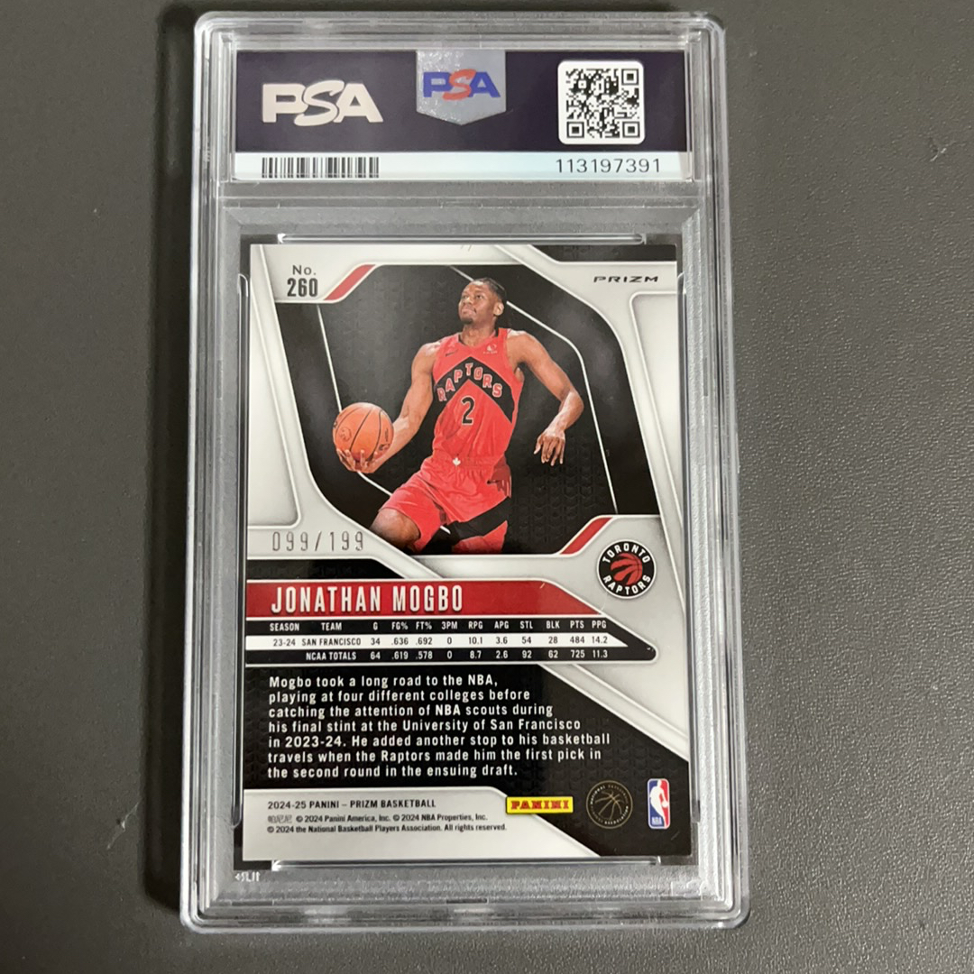 2024-25 Panini Prizm Jonathan Mogbo RC 猛龙队 潜力新星 乔纳森 莫格博 新秀年 正蓝折 099/199编 PSA 9分 未来可期 投资收藏必备