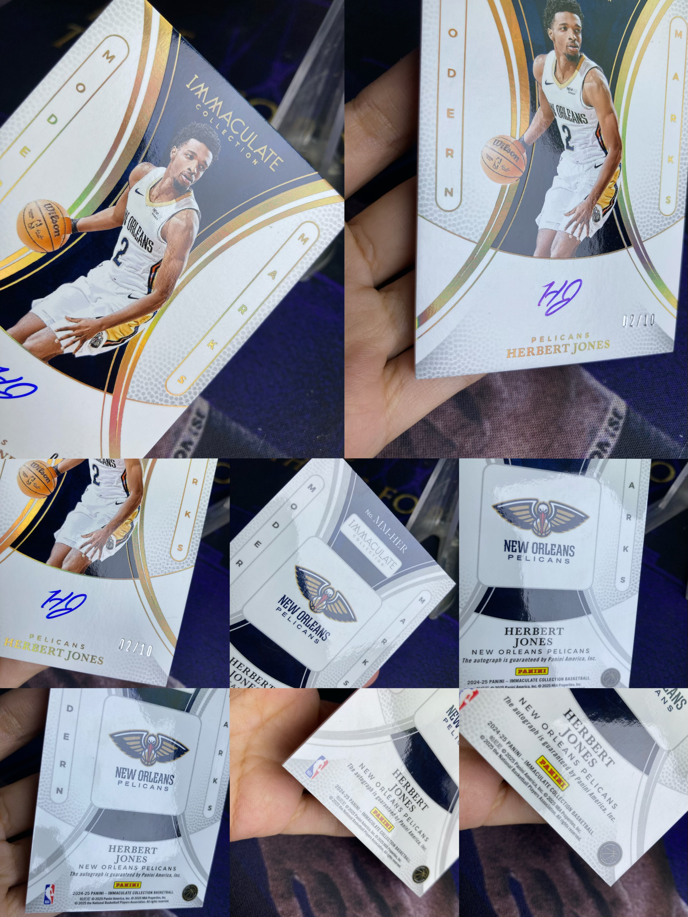 2024-25 Panini Immaculate Herbert Jones 【星卡优转】IMM系列 鹈鹕 赫伯特 琼斯 02/10编 同背 签字 卡签 金平行 专收必备 微瑕如图 23度