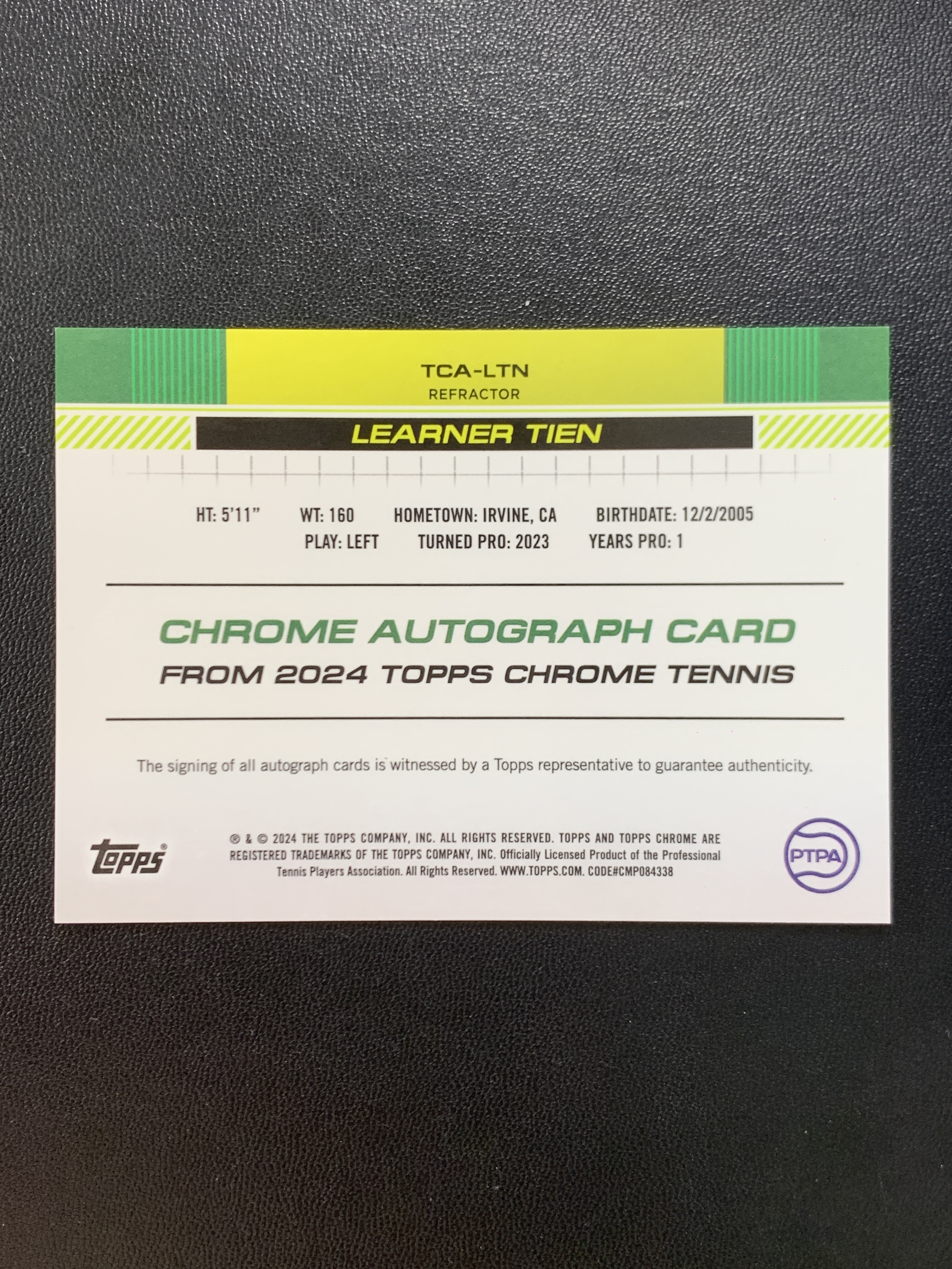 2024 Topps Chrome 网球 Learner Tien 勒纳钱 签字 499编 银折 美国 新秀 RC 勒纳 钱 专收必备
