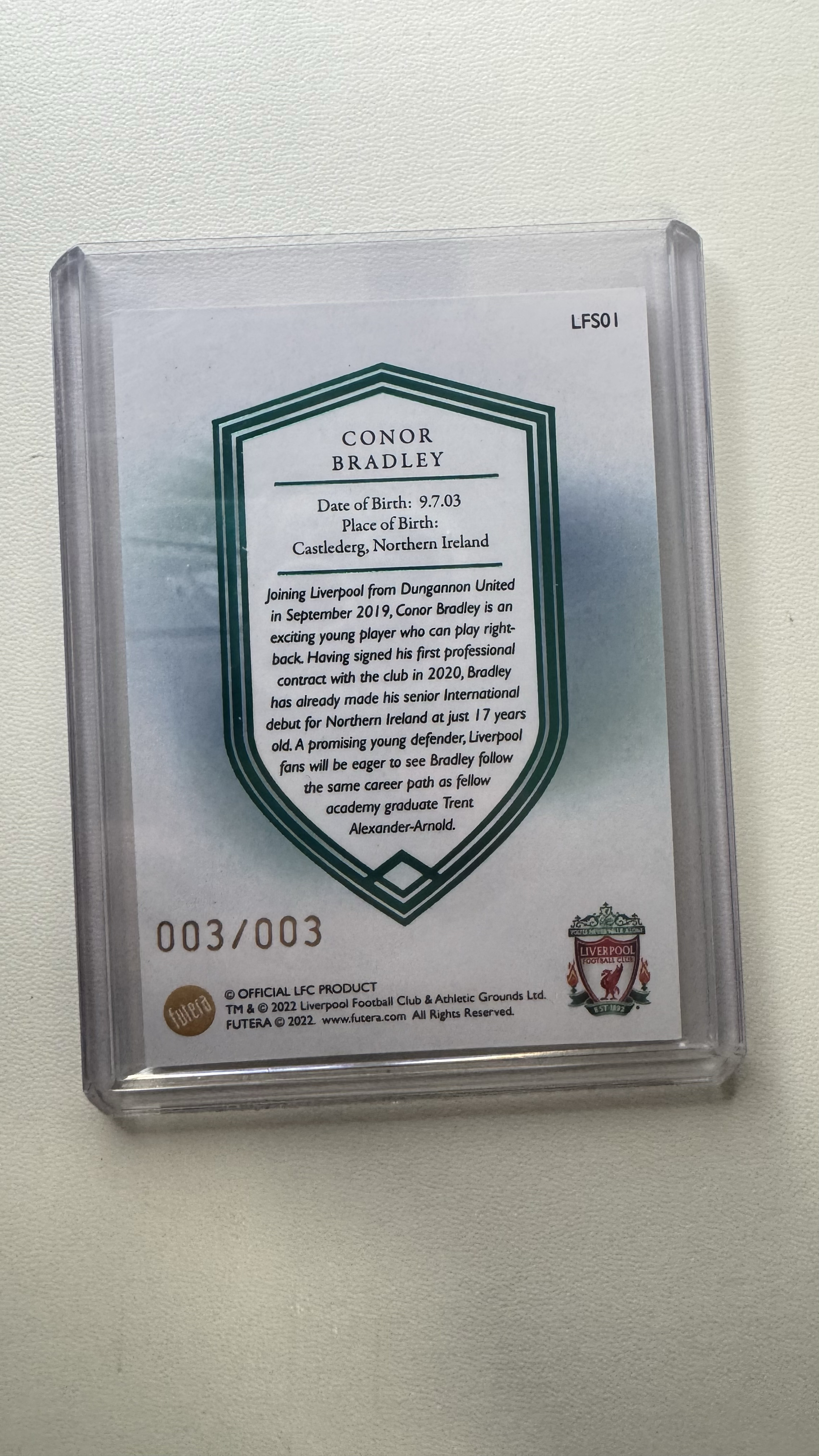 2022 Futera Liverpool LCF Conor Bradley 福特拉 利物浦队盒 康纳 布拉德利 未来之星特卡 3/3尾编 超低编 收藏必备 卡品如图
