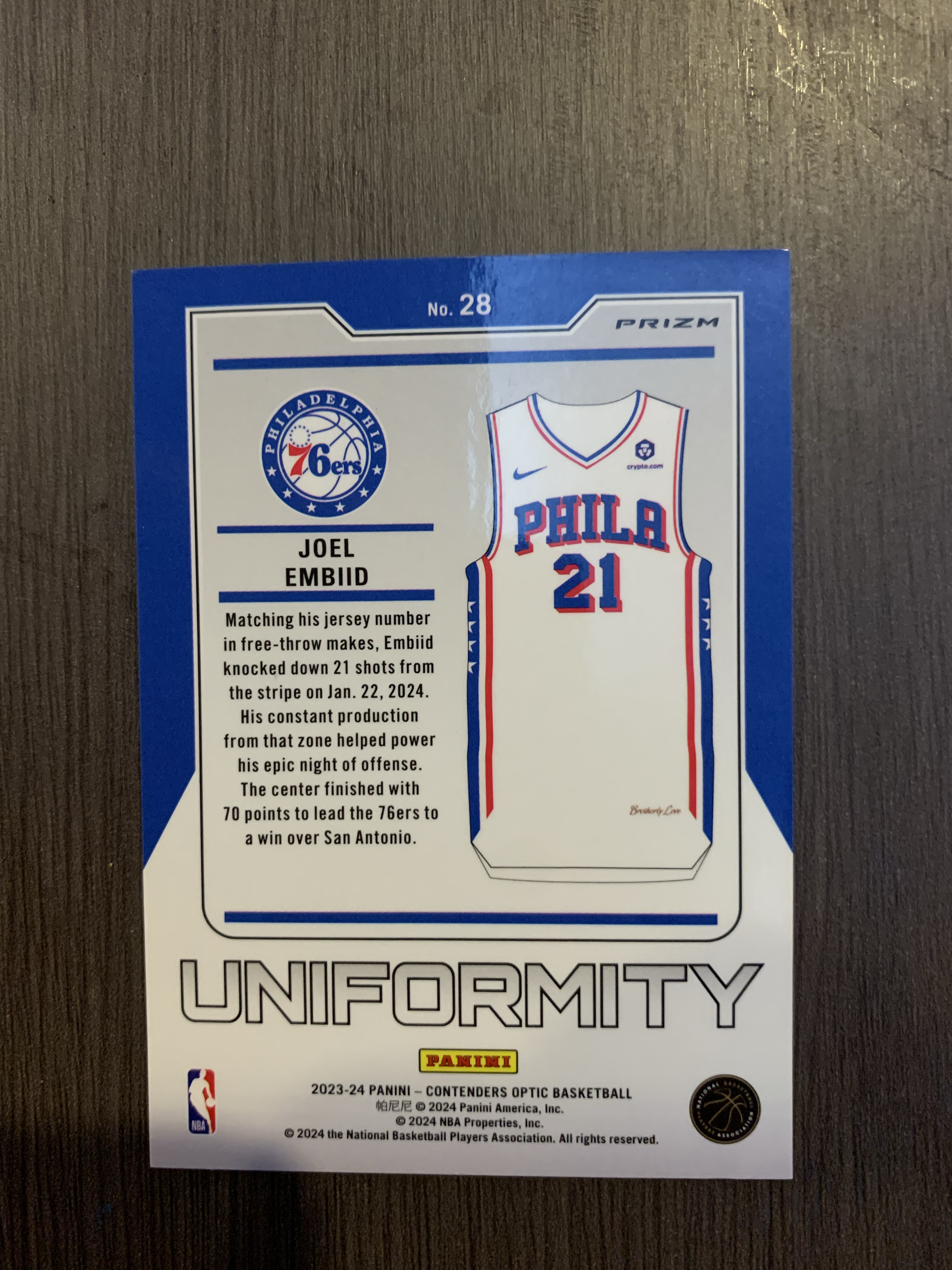 2023-24  PANINI CONTENDERS OPTIC JOEL EMBIID 乔尔 恩比德 大帝 球票 OP 背心  特卡 银折 76人 篮球 专收必备 于此