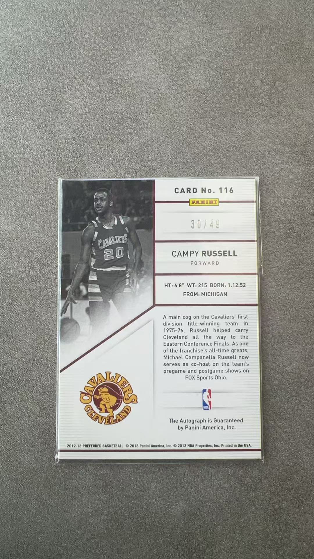 6216【330球星卡实体店代卖】2012-13 帕尼尼 PREFERRED 坎比 拉塞尔 Campy Russell 骑士 30/49编 签字 卡签 AUTO 仅顺丰寄付(UK23)