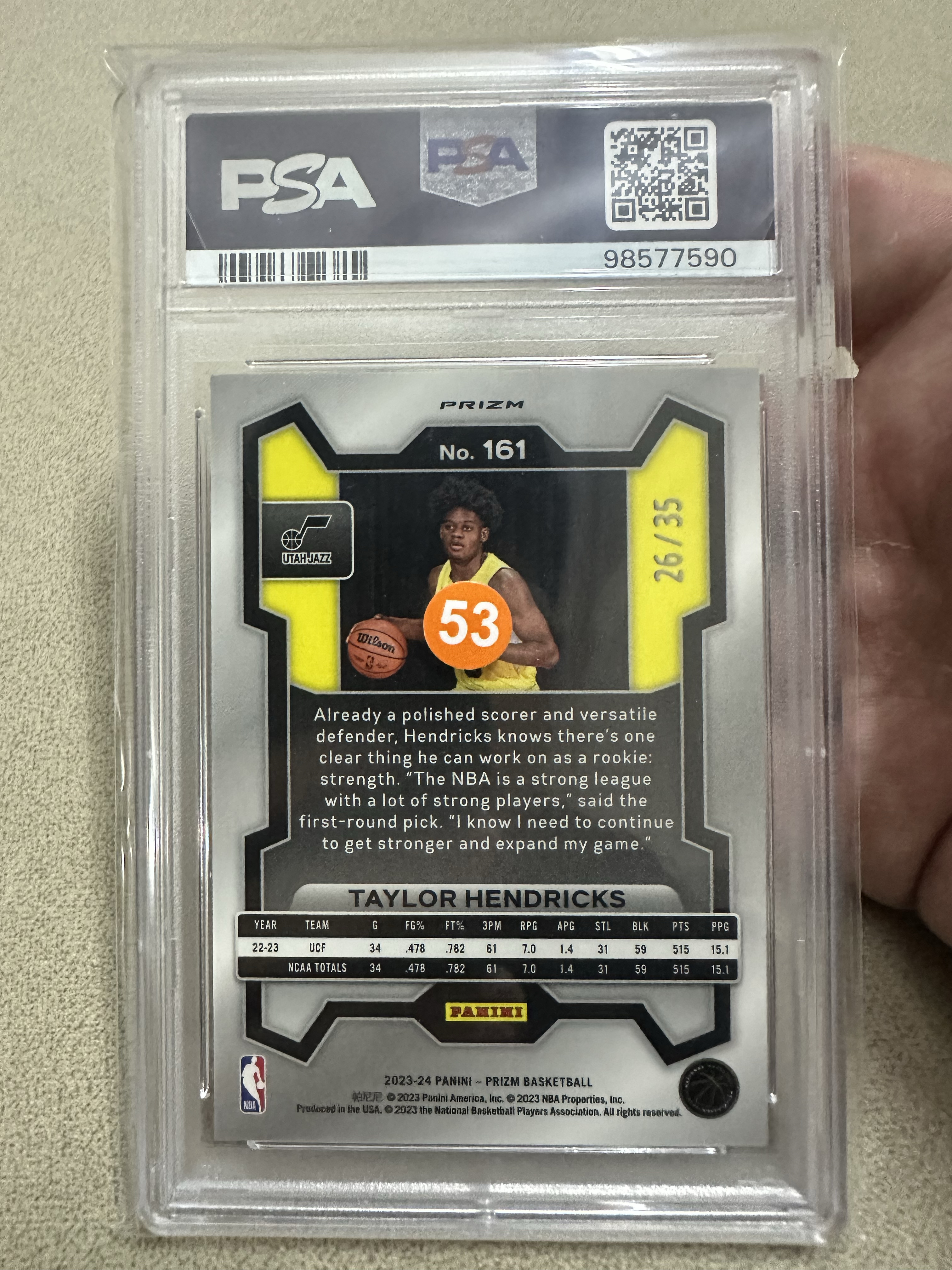 2023-24 Panini Prizm Taylor Hendricks RC PZ 爵士 泰勒 亨德里克斯 新秀RC 白碎冰折 35编 psa10 高分完美卡品