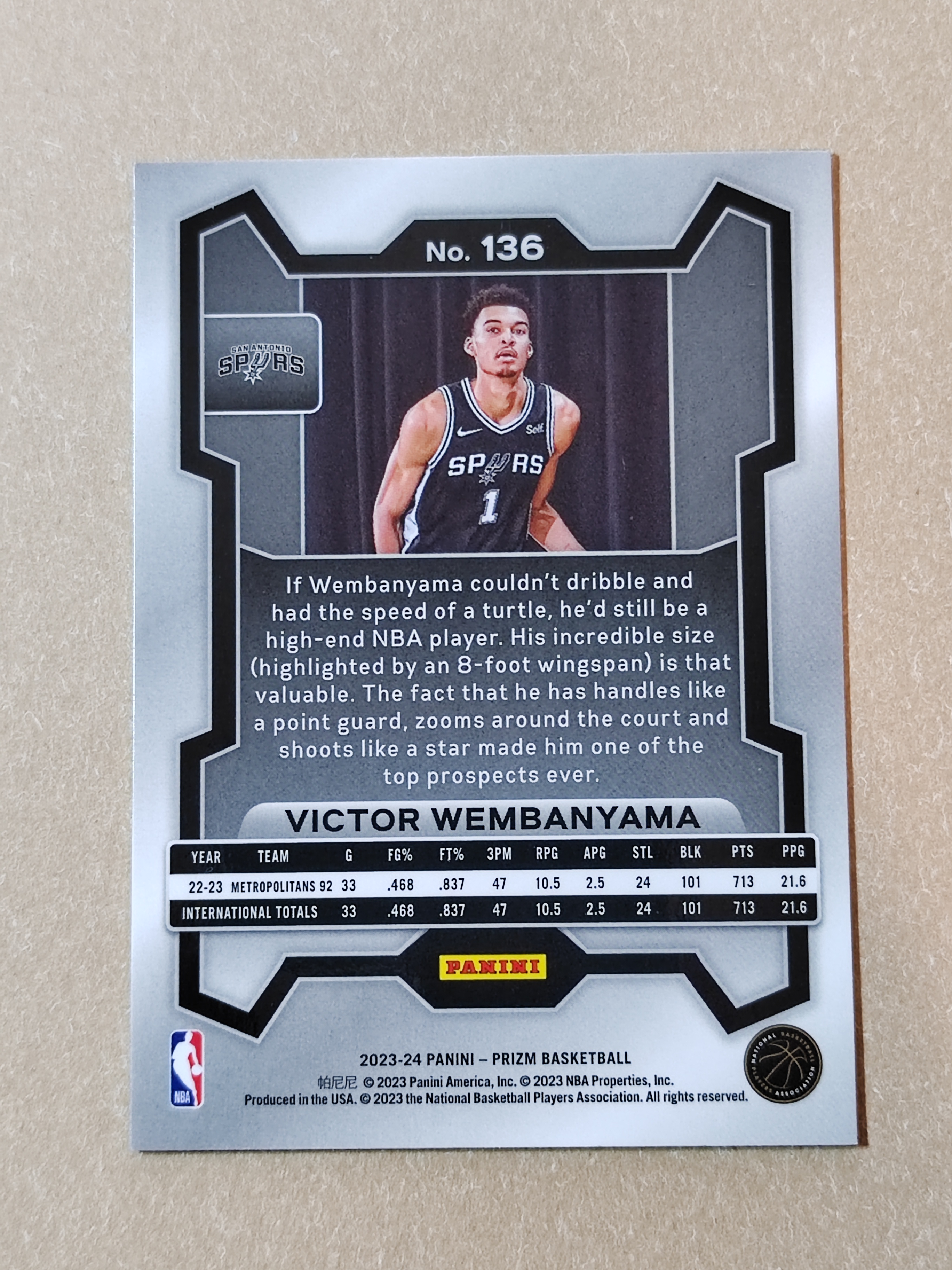 2023-24 Panini Prizm Victor Wembanyama RC 2023-24 PRIZM 马刺 Victor Wembanyama 维克托 文班亚马 新秀 BASE 表现爆炸 超巨