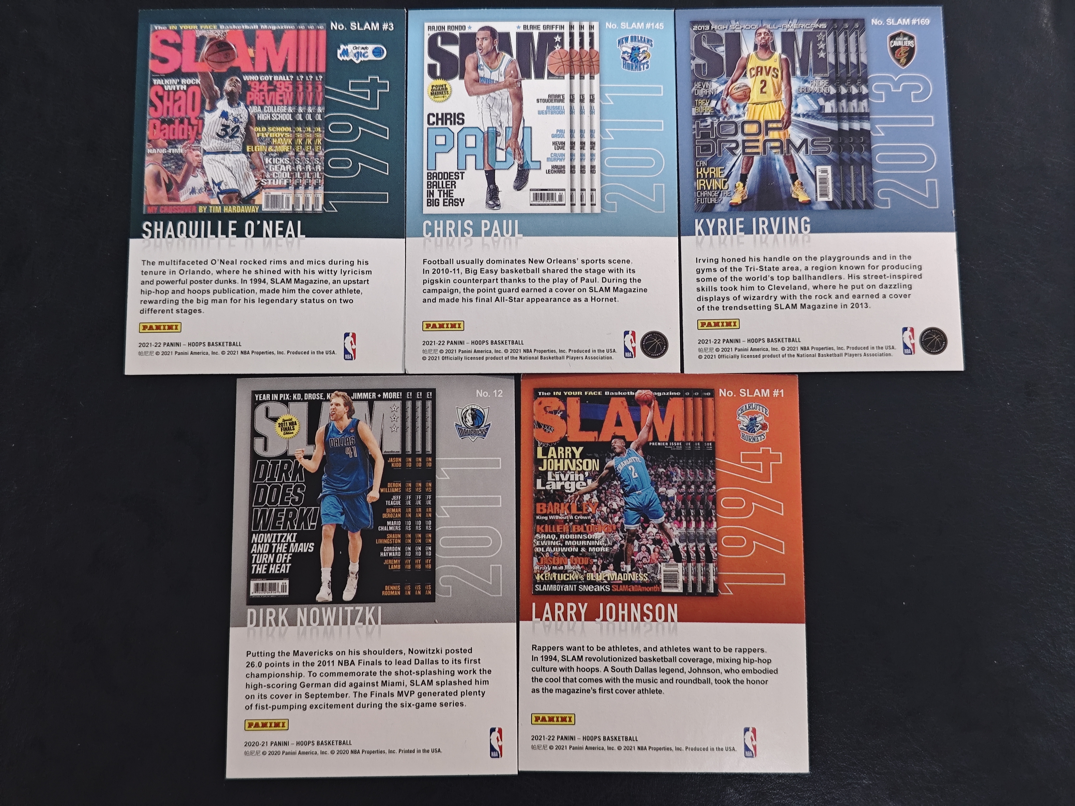 2021-22 Panini NBA Hoops Shaquille O’Neal 大鲨鱼 奥尼尔 克里斯 保罗 CP3 凯里 欧文 诺维斯基 拉里 约翰逊 大妈 杂志 特卡SLAM 绝版卡种 五张打包