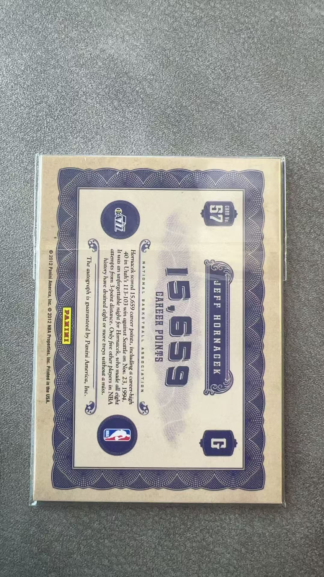 6227【330球星卡实体店代卖】2012 帕尼尼 Gold Standard 杰夫 霍纳塞克 Jeff Hornacek 爵士 47/49编 生涯总得分 签字 AUTO 仅顺丰(UK23)
