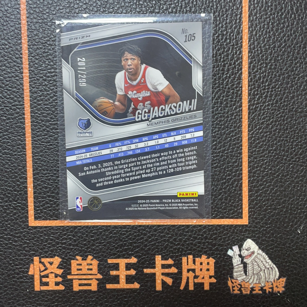 (怪兽拍卖) GSW-D93 2024-25 Panini prizm black G.G. Jackson GG 杰克逊 299编 红折 折射 灰熊新星 潜力巨大