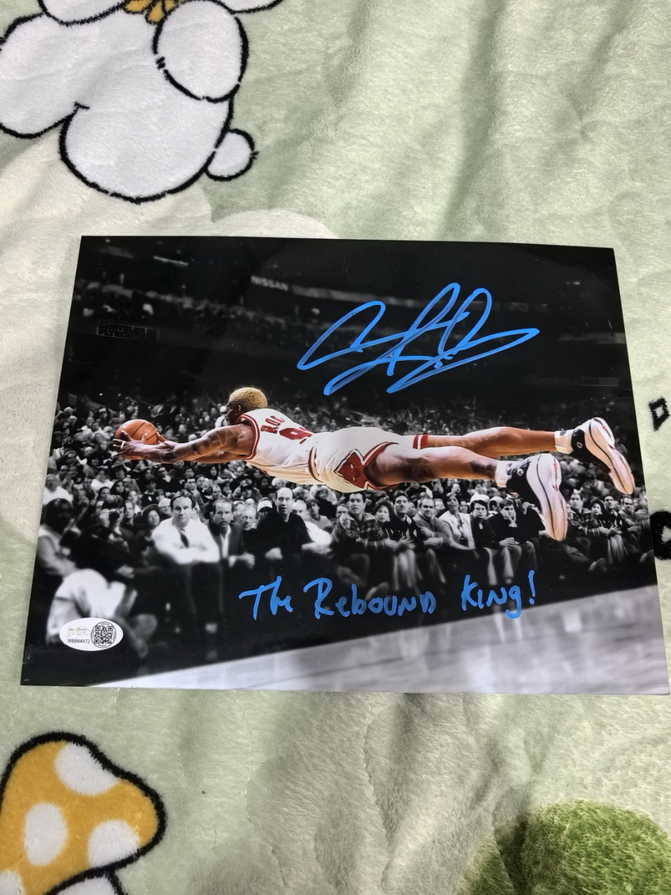 【叫板拍卖】大虫 罗德曼 签字 签名照片 JSA认证无卡 经典救球 10寸海报 加签铭文 顺丰到付