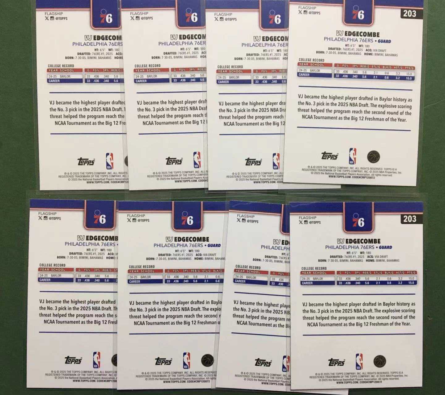 2025 Topps Flagship Valdez VJ Edgecombe Jr RC 元年 新秀 76人 VJ 埃奇库姆 正base 弗拉格 杨瀚森同届 马克西队友 8张lot 不保卡品#岩