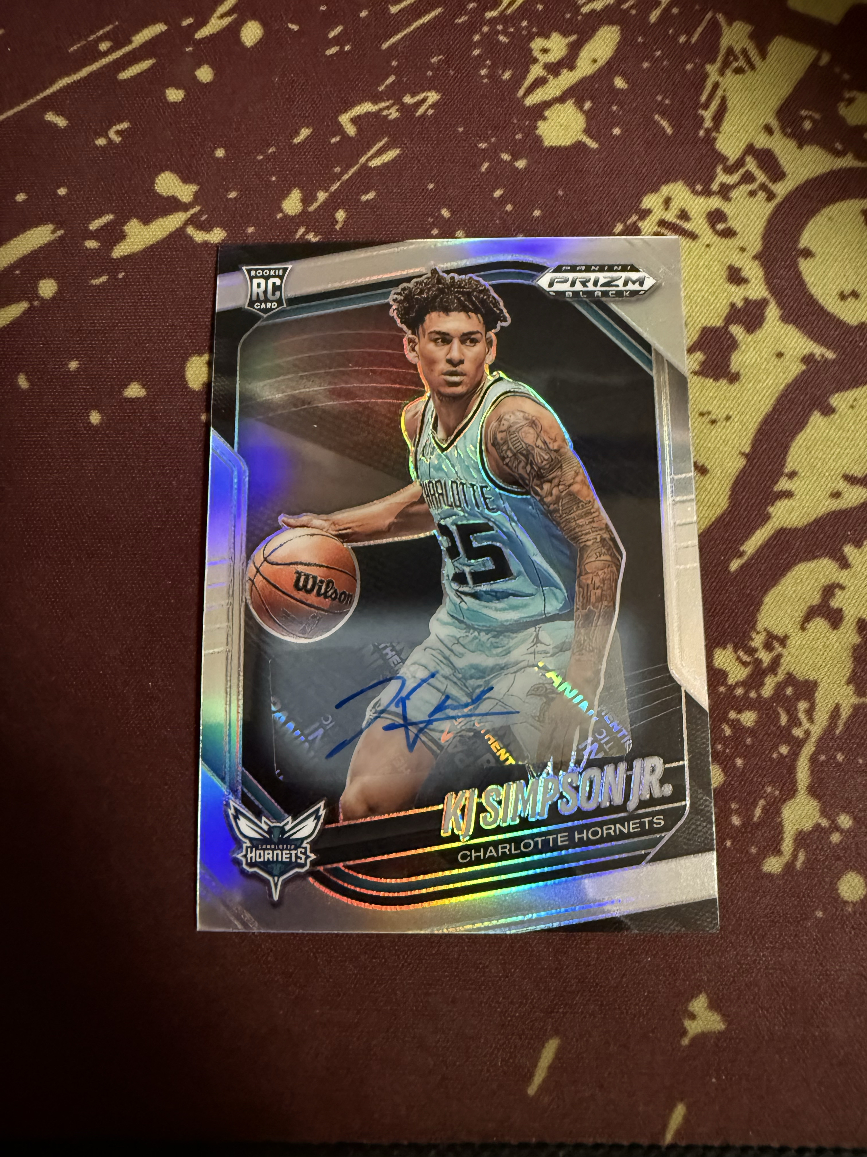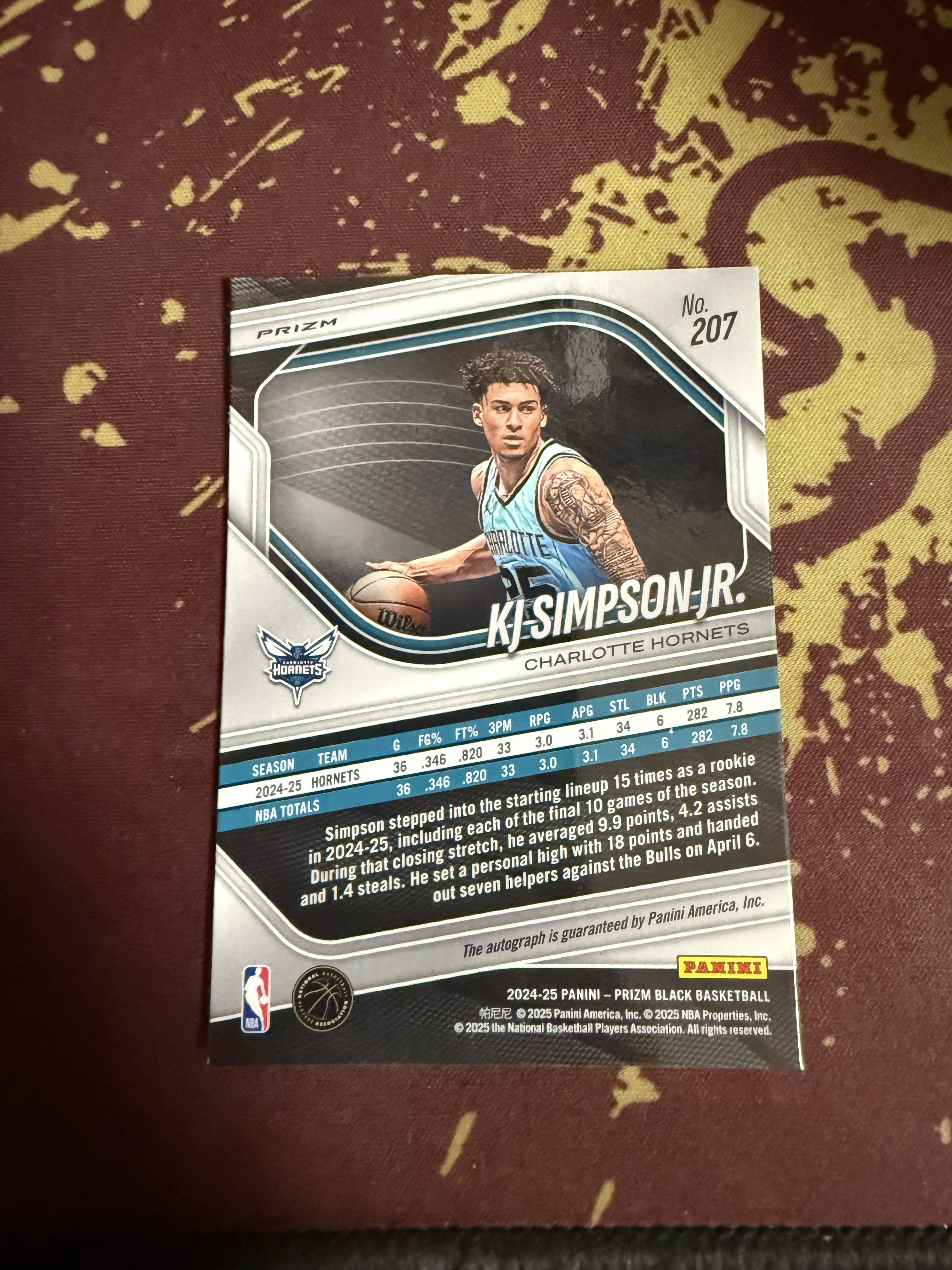 【对号拍卖】(Lt总)2425 帕尼尼 prizm black系列 黄蜂新秀rc KJ Simpson Jr KJ 辛普森 签名 签字 银折 稀有 实卡好看 印刷线如图