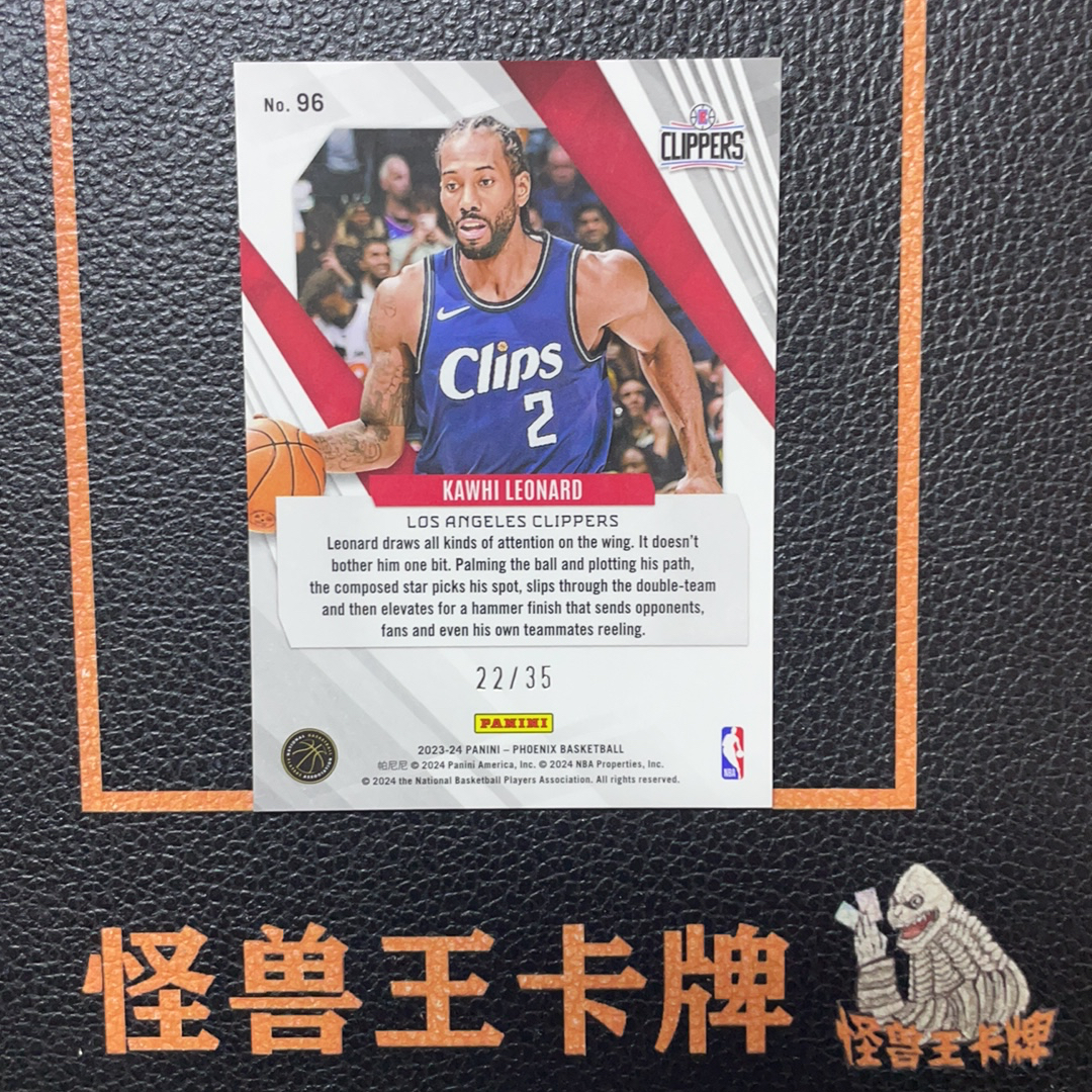 (怪兽拍卖) GSW-A52 2023-24 Panini Phoenix Kawhi Leonard 凤凰 快船 小卡 科怀 伦纳德 22/35编 蓝圈圈折 卡品如图
