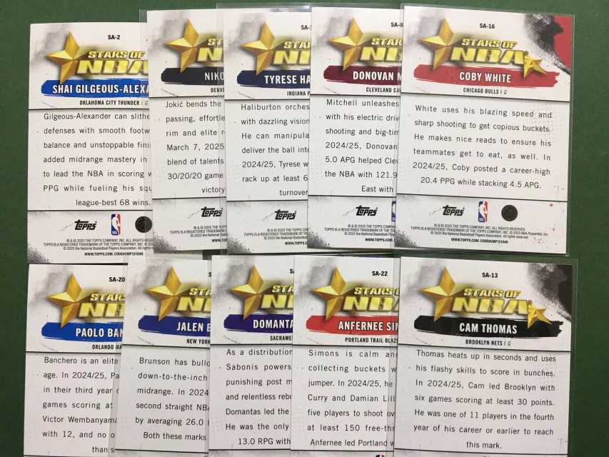 2025 Topps Flagship Nikola Jokic 掘金 约基奇 雷霆 亚历山大sga 班凯罗 哈利伯顿 米切尔 布伦森等10张lot 银折 STARS OF NBA 星星特卡 不保卡品