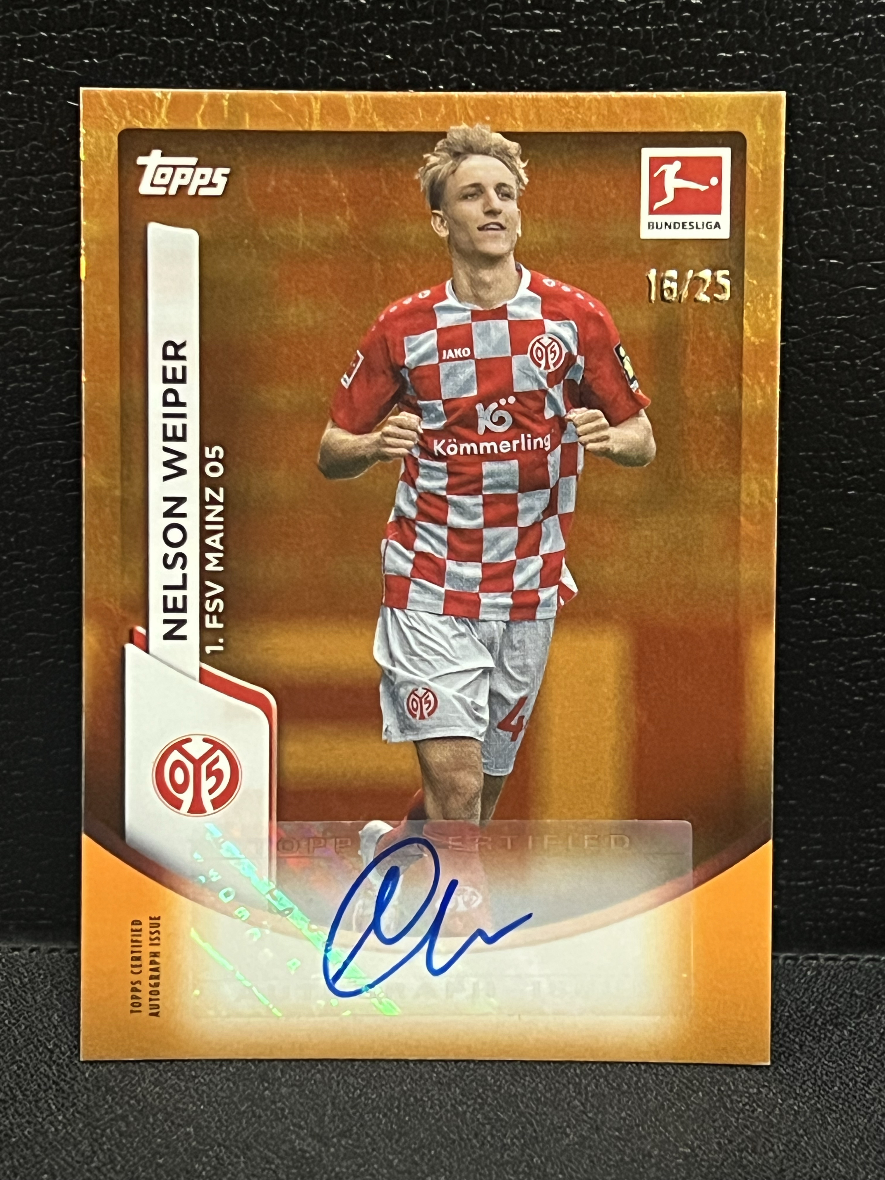 2023-24 Topps 德甲碧玉 nelson weiper 【北伦敦拍卖】 魏珀 橙折16/25编 签字 美因茨 德国🇩🇪 未来可期