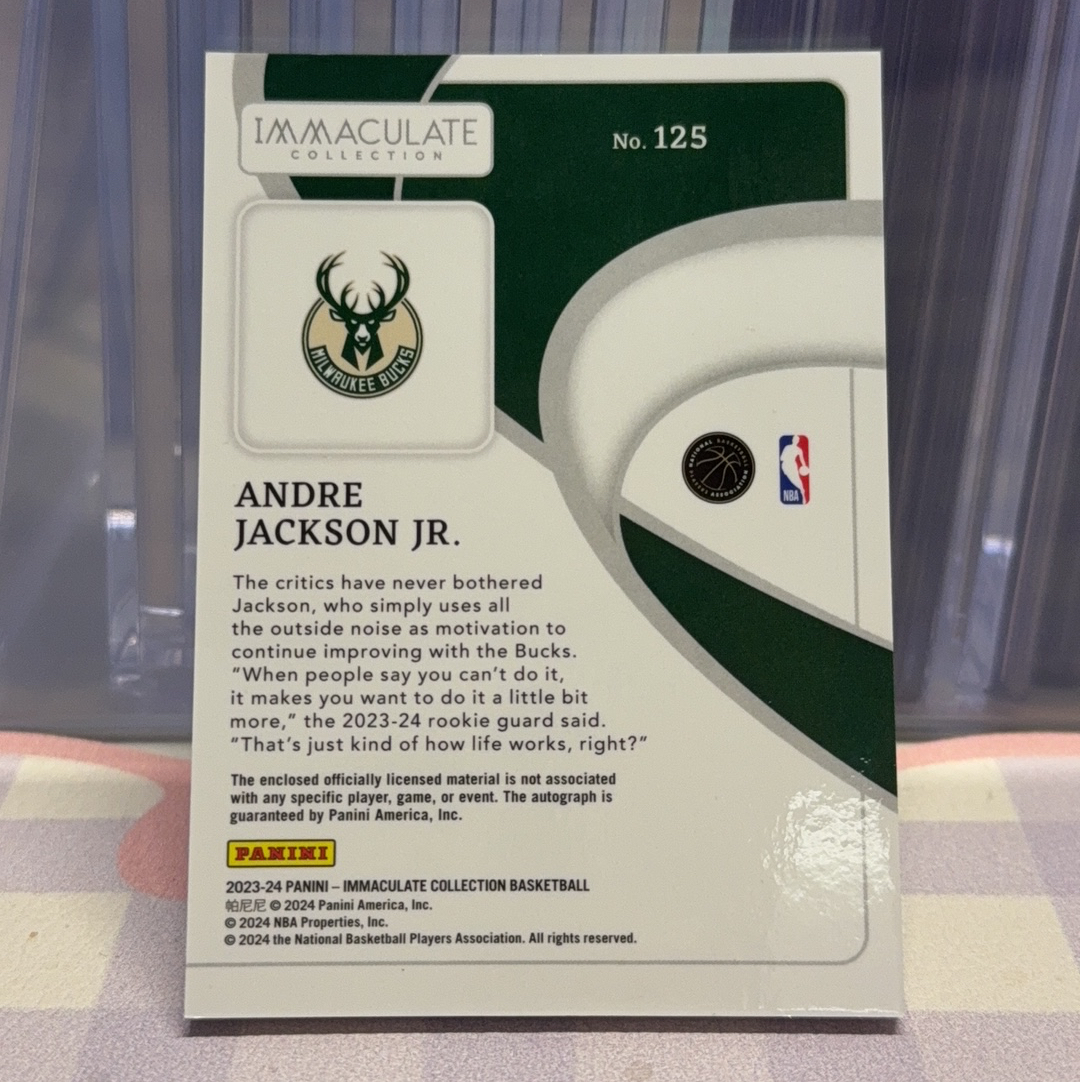 2023-24 Panini Immaculate Andre Jackson Jr. RC 雄鹿 新秀 爱咪咪 04/44编 NPA RPA 球衣物料 暴力patch 签字 卡签 卡品如图 专收必备