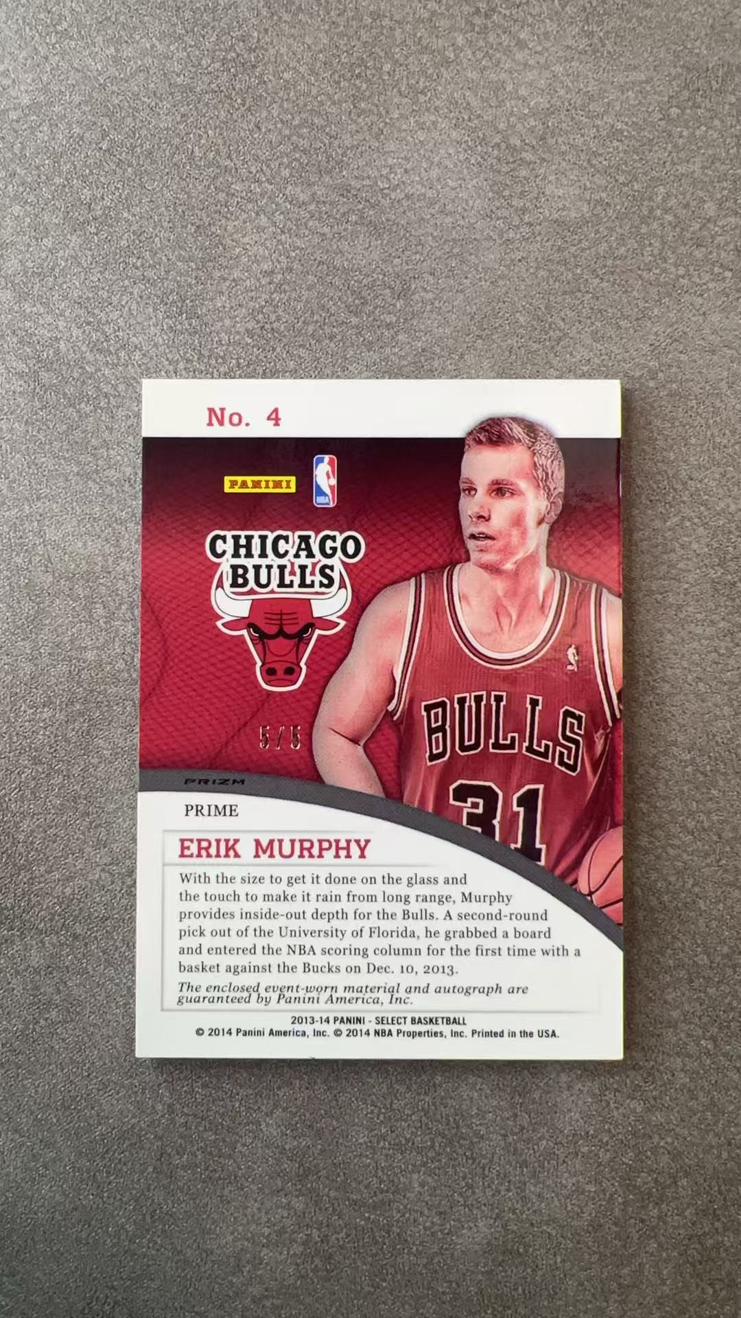 6267【330球星卡实体店代卖】2013-14 帕尼尼 SELECT 埃里克 墨菲 Erik Murphy 公牛新秀RC 5/5编低编 RPA 小窗Patch签字AUTO 仅顺丰寄付(UK23)