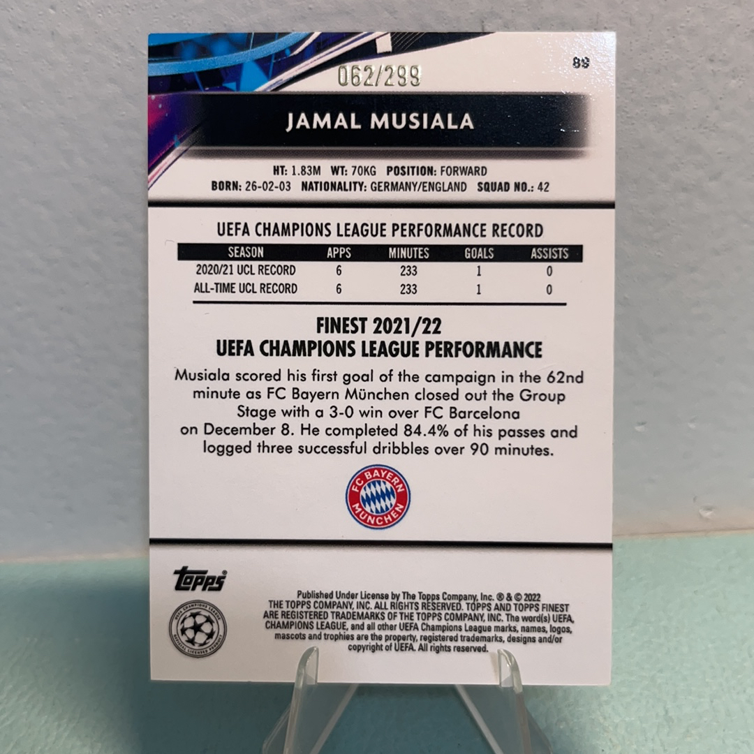 2022 Topps Finest Jamal Musiala 欧冠 拜仁慕尼黑 穆夏拉 299编 紫折 卡品看图kz