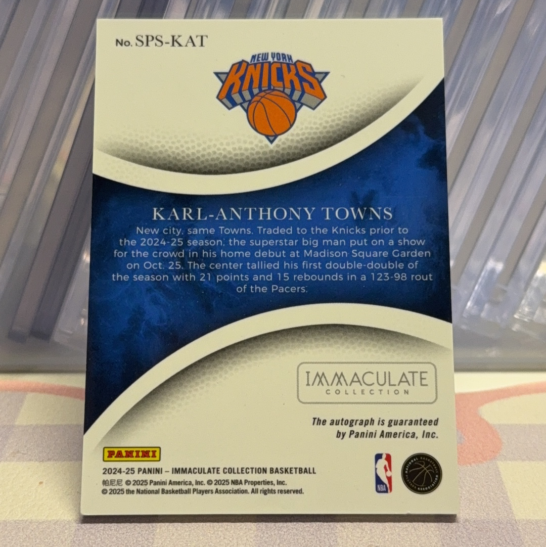 2024-25 Panini Immaculate Karl Anthony Towns 爱咪咪 尼克斯 卡尔 安东尼 唐斯 13/49编 Sophisticated 签字 卡签 卡品如图 布伦森