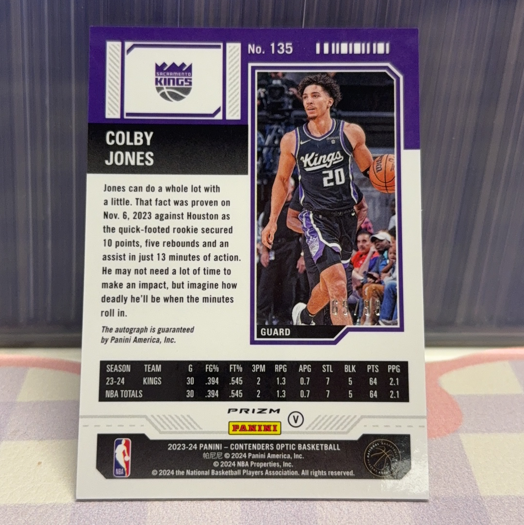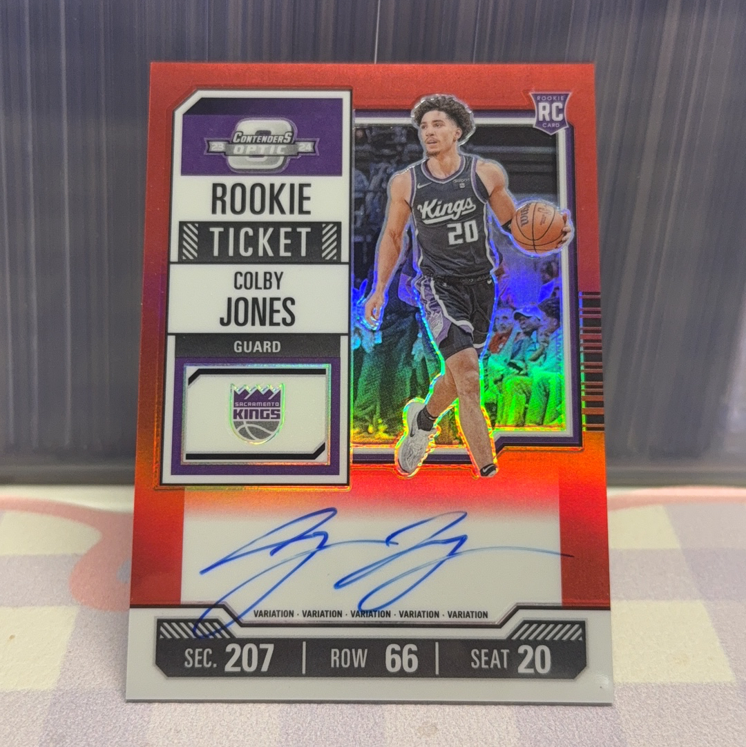 2023-24 Panini Contenders Optic Colby Jones RC 球票OP 国王 新秀 科尔比 琼斯 69/99编 红折 签字 卡签 卡品如图 专收必备