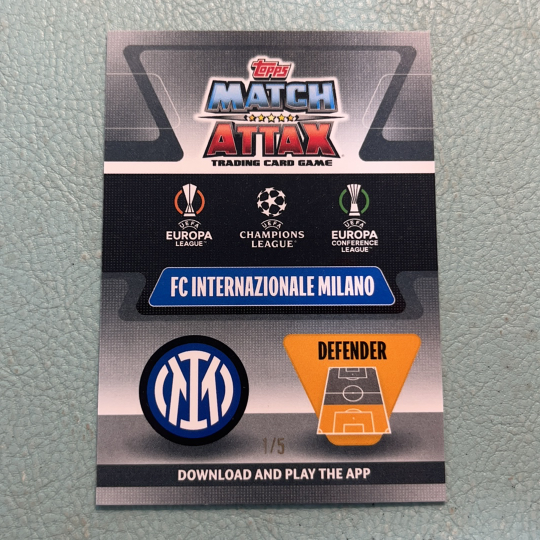 2024 Topps Match Attax Milan Skriniar 米兰 什克里尼亚尔 斯洛伐克 国际米兰 巴黎圣日耳曼 欧冠 游戏版 1/5编 首编 低编 卡品看图kz