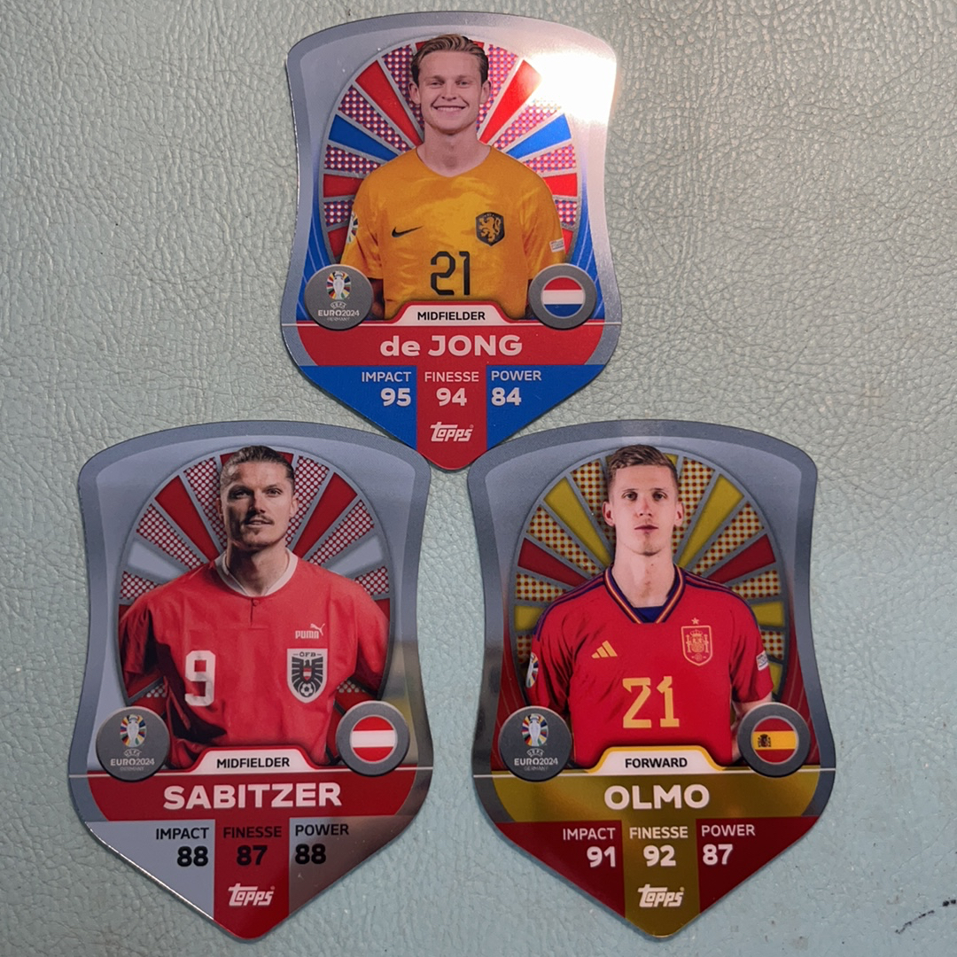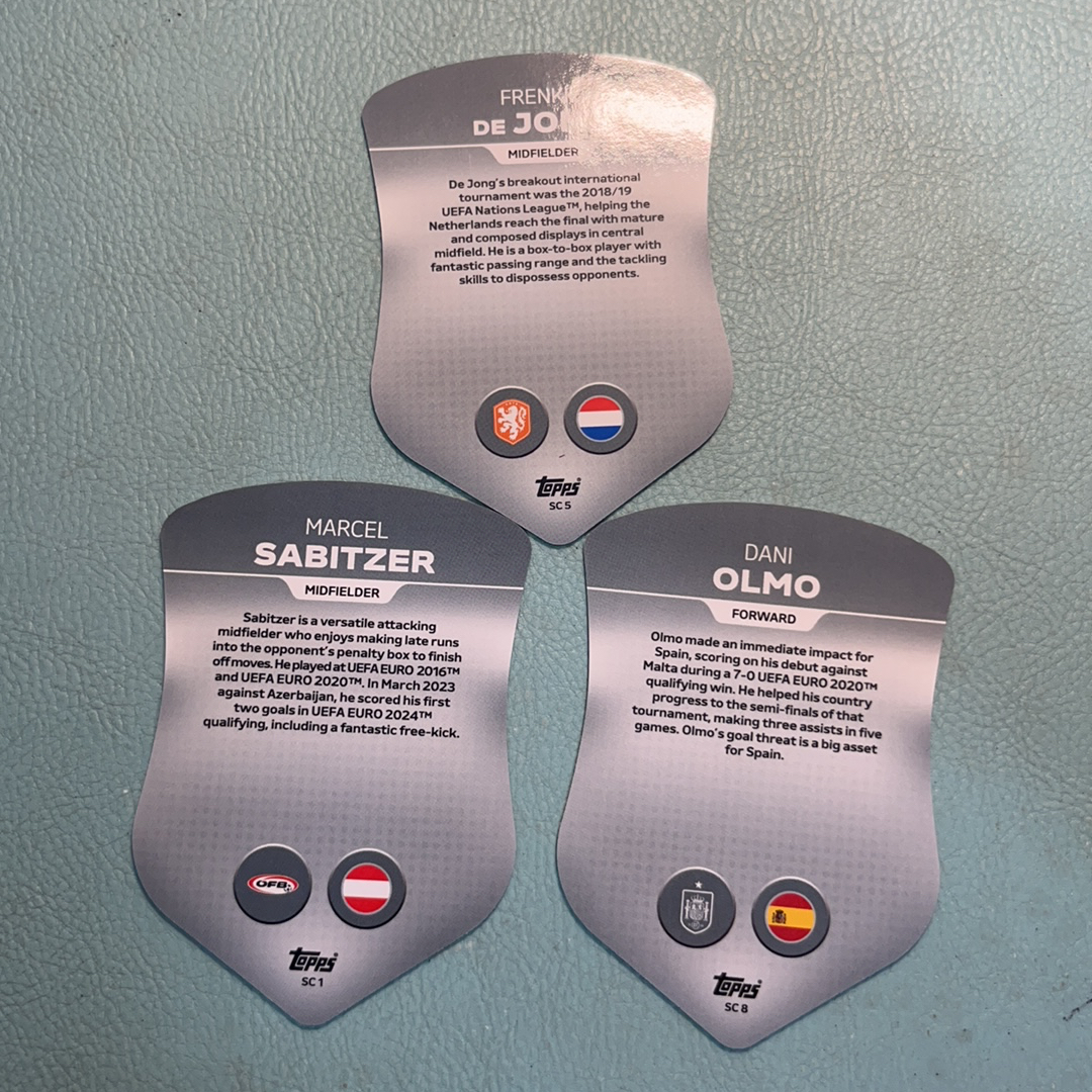 2024 Topps 欧洲杯游戏版 Dani Olmo 奥尔莫 德容 萨比策 异形特卡 3张打包 盾牌设计 大比例 SP 西班牙 荷兰 奥地利 卡品看图kz