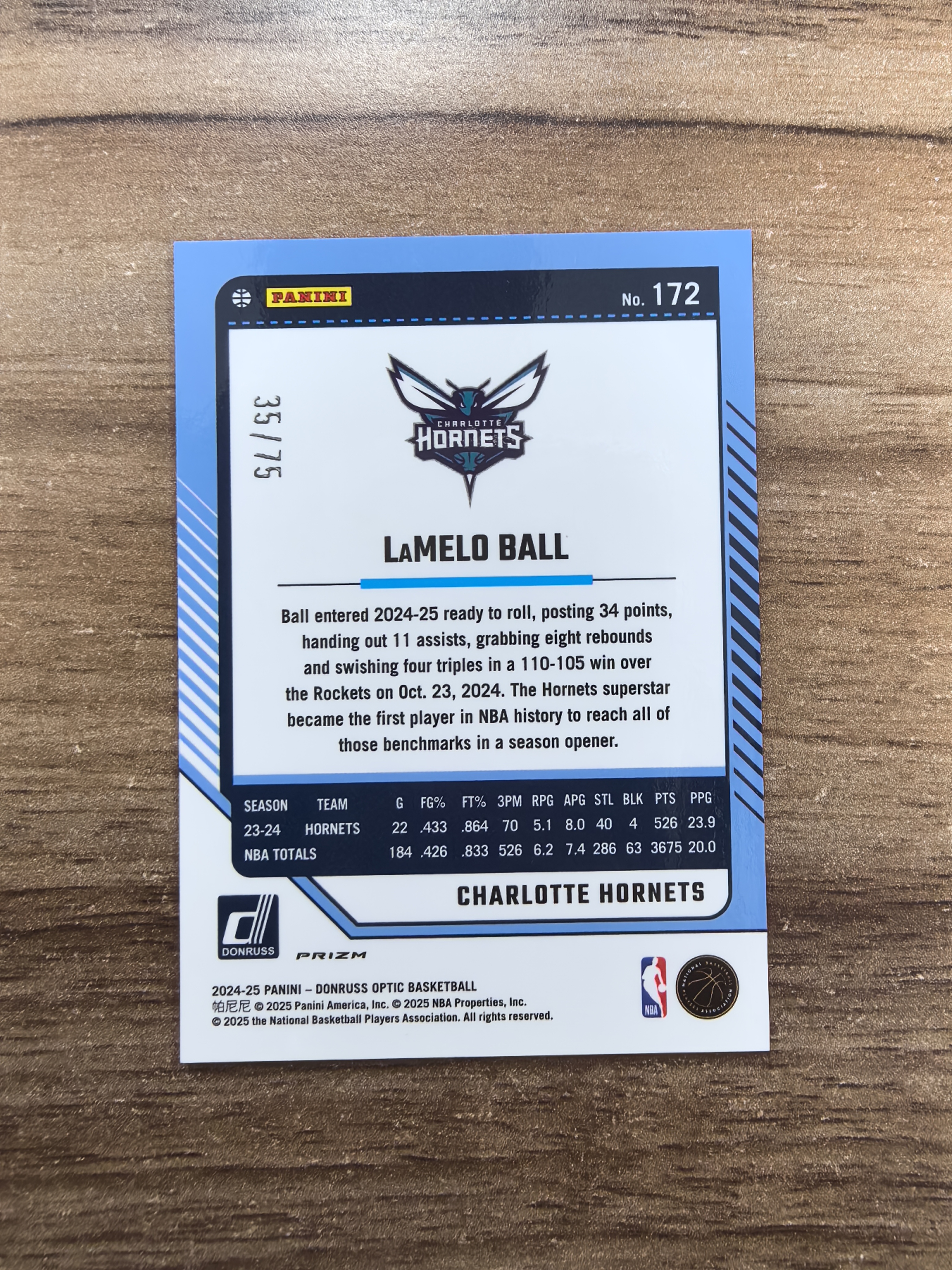 2024-25 Panini Donruss LaMelo Ball 杜蕾斯OP 黄蜂 三球 拉梅洛鲍尔 35/75编 红泡泡折 折射 实卡精美 卡品如图 收藏必入 流浪