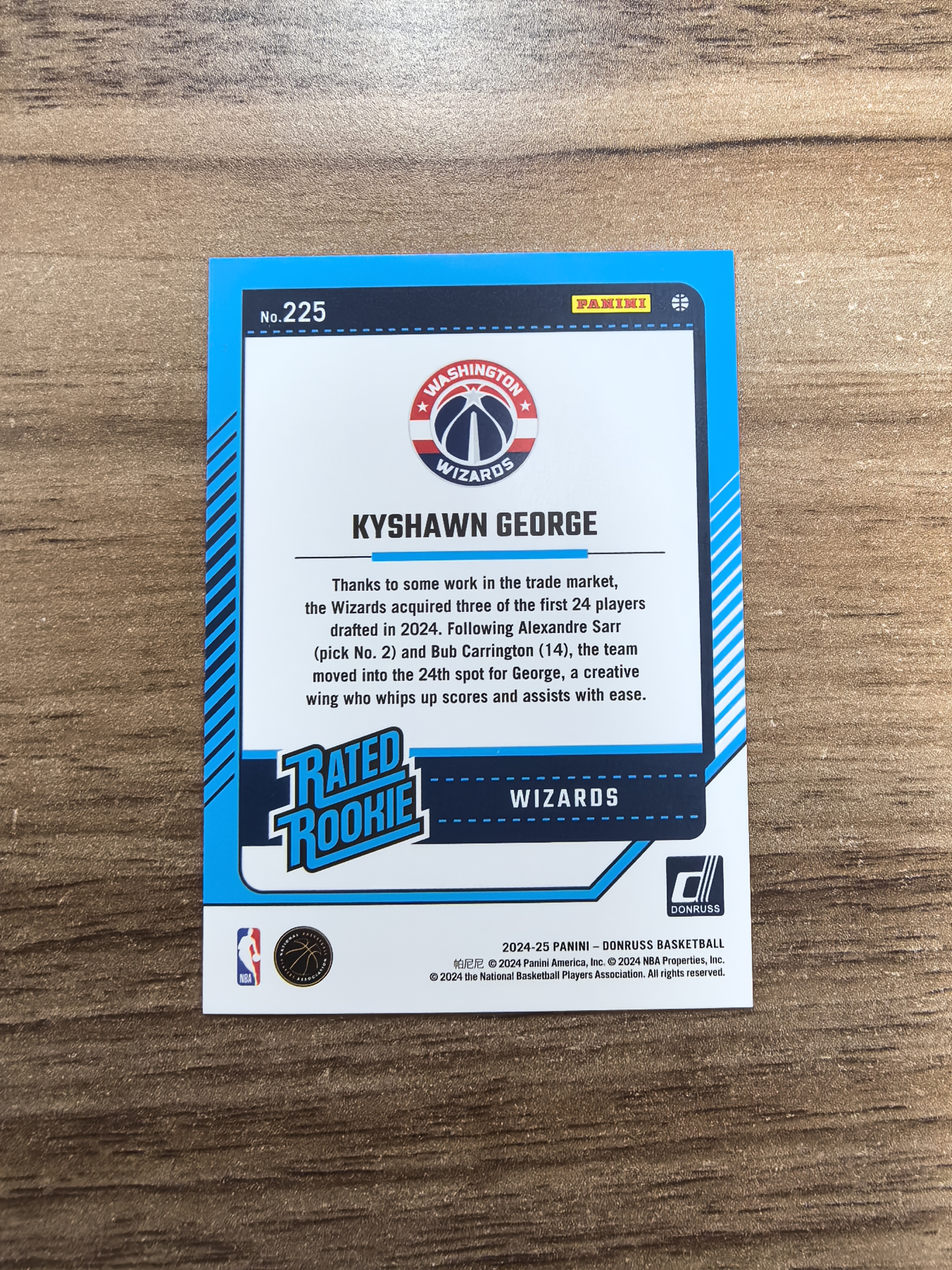 2024-25 Panini Donruss Kyshawn George RC 杜蕾斯 奇才 凯肖恩乔治 新秀 018/149编 佛光折 折射 实卡精美 卡品如图 收藏必入 流浪