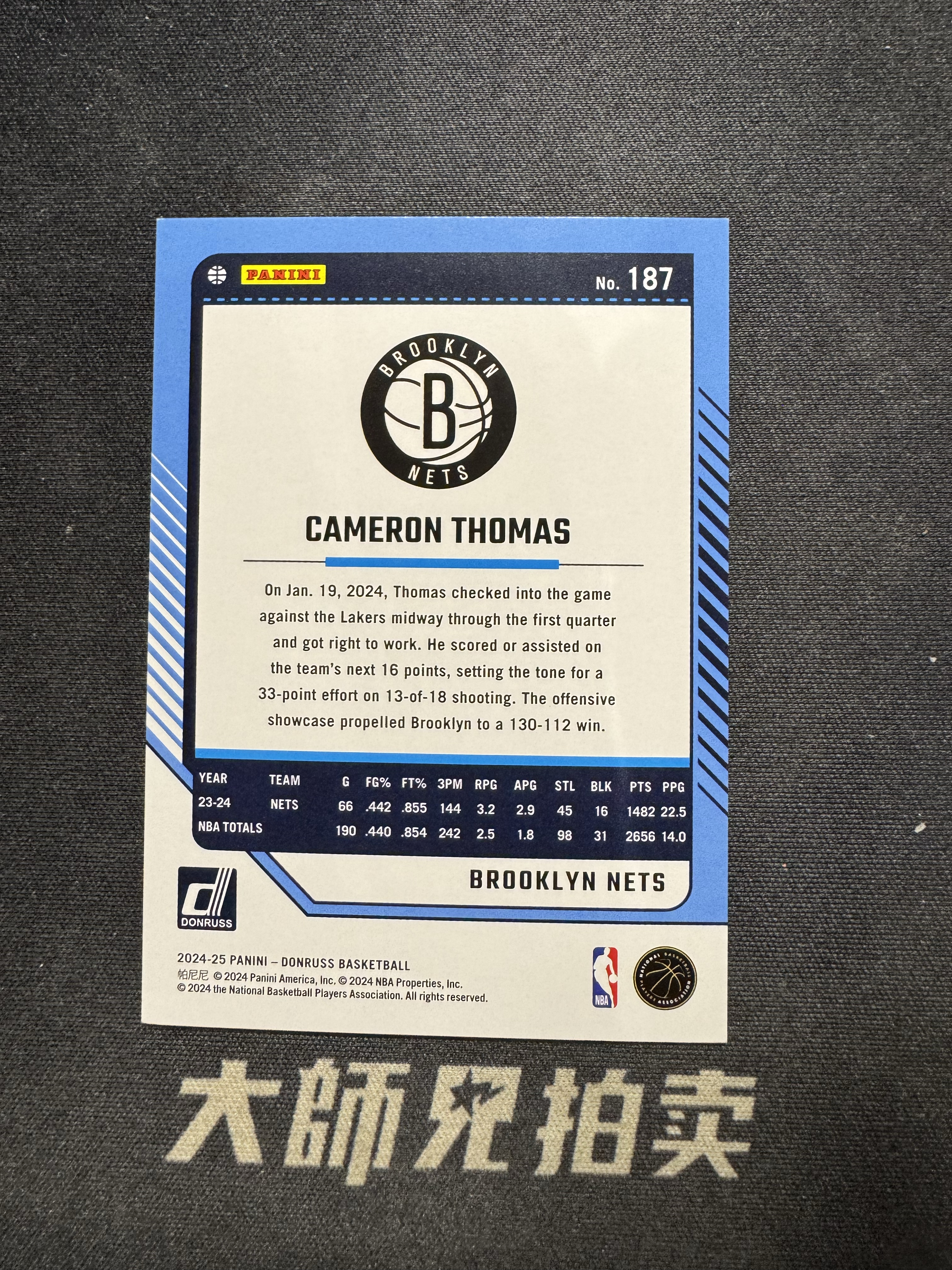 【大师兄拍卖】2024-25 Panini Donruss CAMERON THOMAS 篮网 卡梅隆 托马斯 杜蕾斯 /49编 蓝折 蓝mojo折 通行品 -有于-