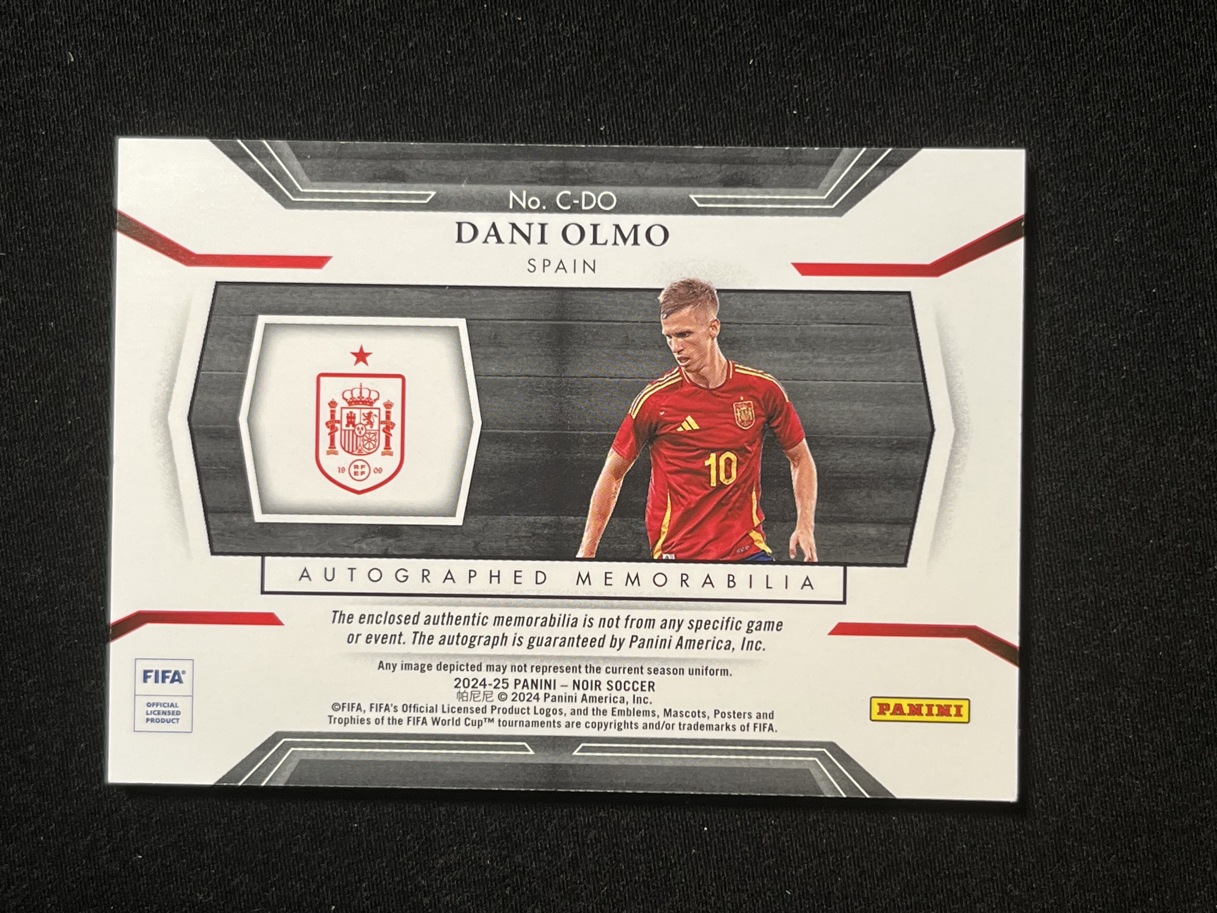 PANINI 2024-25 NOIR 西班牙 Dani Olmo 达尼 奥尔莫 球衣签字卡 /49 卡面右边框有瑕疵 PHC