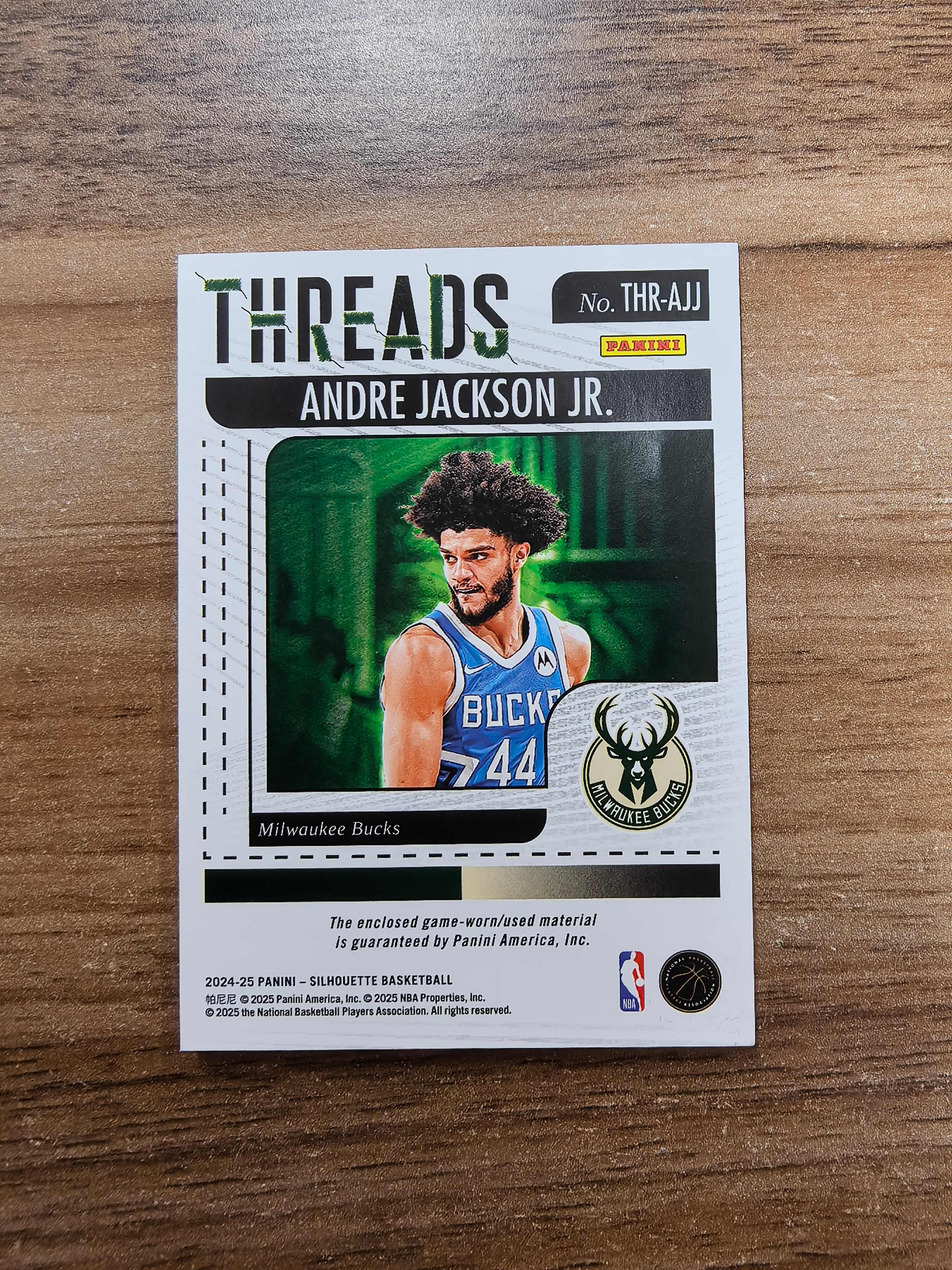 2024-25 Panini SILHOUETTE Andre Jackson Jr. 剪影 雄鹿 小安德烈杰克逊 19/25编 大窗球衣 暴力切割 实卡精美 卡品如图 收藏必入 流浪