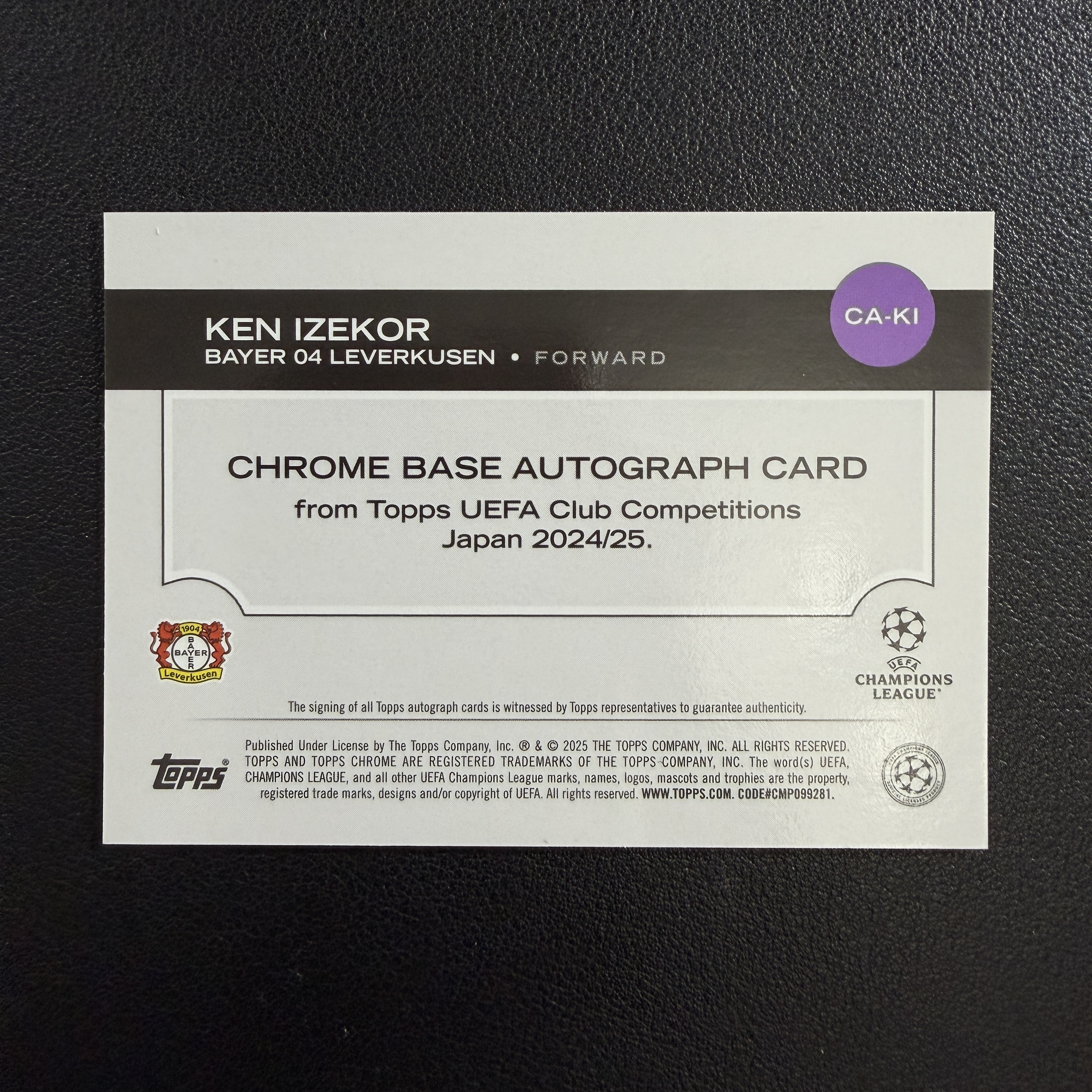 2024-25 Topps Chrome Ken Izekor RC 伊泽科尔 伊泽克尔 伊泽科 勒沃库森 新秀 欧冠 TC 日版 签字 75编 蓝迷宫折 折射  瑕疵如图 白鹿