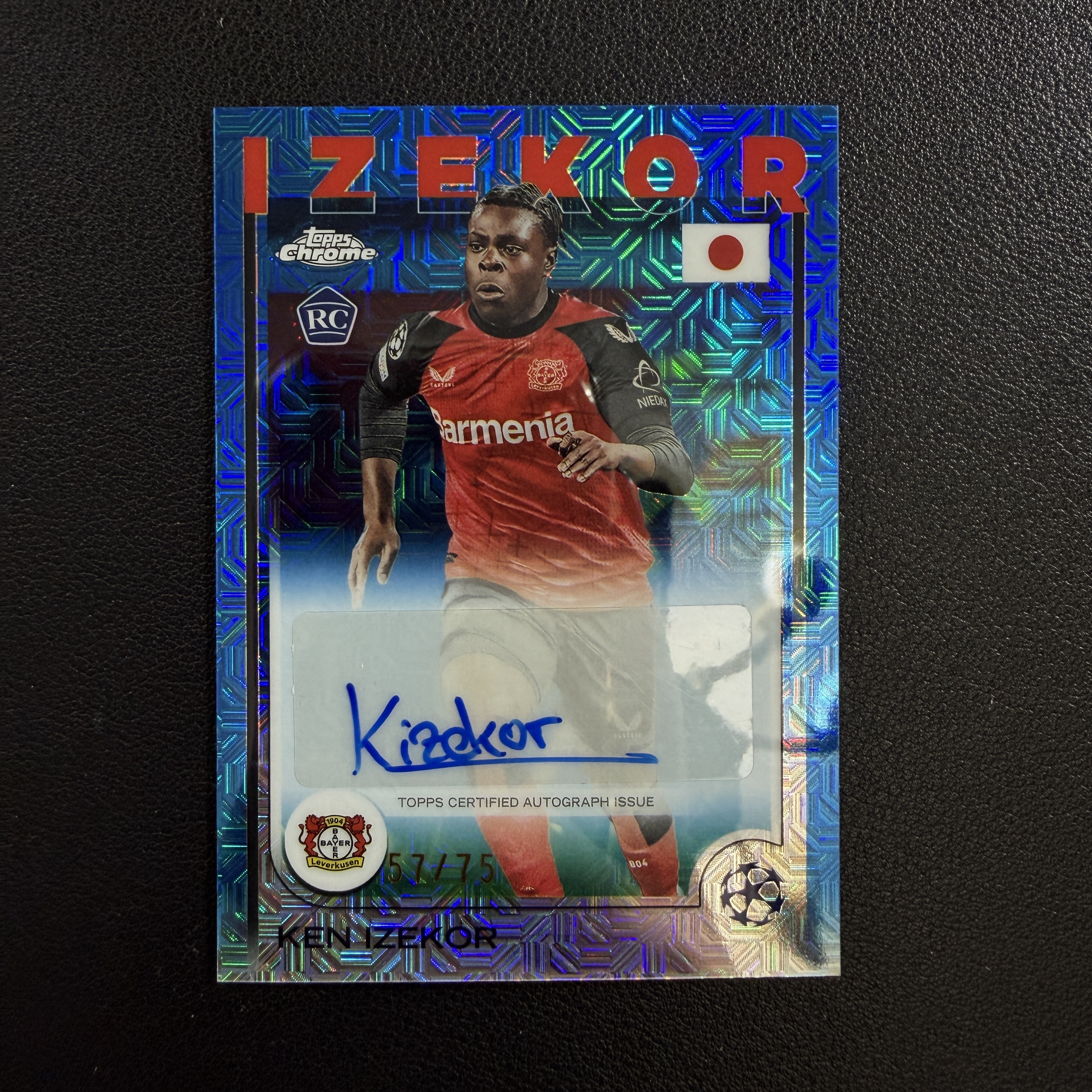 2024-25 Topps Chrome Ken Izekor RC 伊泽科尔 伊泽克尔 伊泽科 勒沃库森 新秀 欧冠 TC 日版 签字 75编 蓝迷宫折 折射 瑕疵如图 白鹿