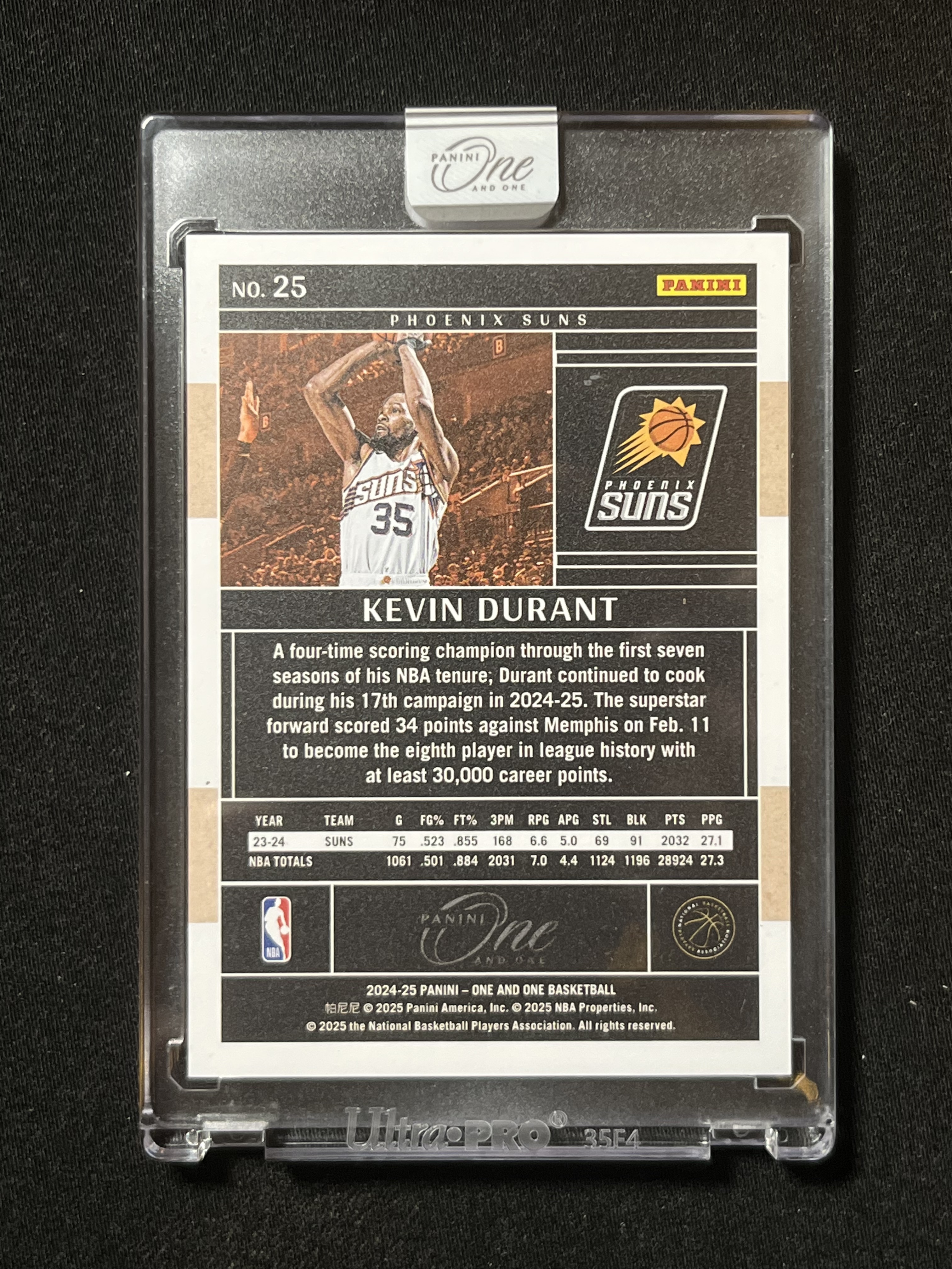PANINI 2024-25 ONE AND ONE 太阳 Kevin Durant 凯文 杜兰特 base 蓝平行 22/35 原封砖 花布袋