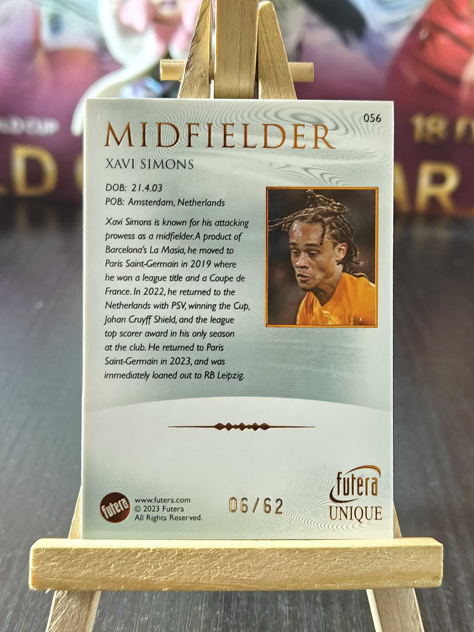 2023 Futera Uniqe Xavi Simons 福特拉系列 哈维 西蒙斯 06/62编 Base 荷兰 莱比锡红牛 热刺 卡品如图 收藏必备