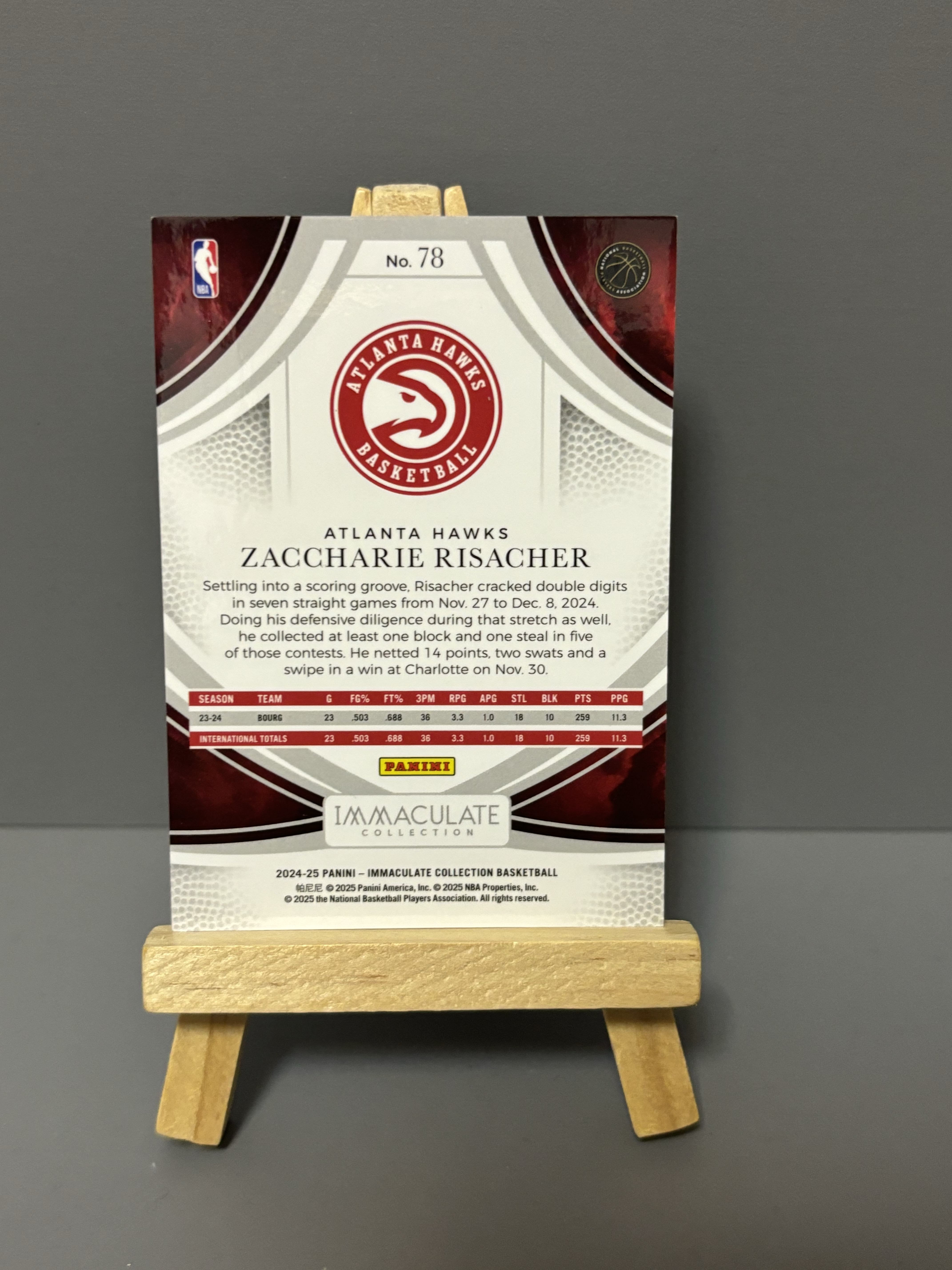 2024-25 Panini Immaculate Zaccharie Risacher RC 爱咪咪 老鹰扎卡里 里萨谢 新秀RC 45/49编 红平行 收藏必备