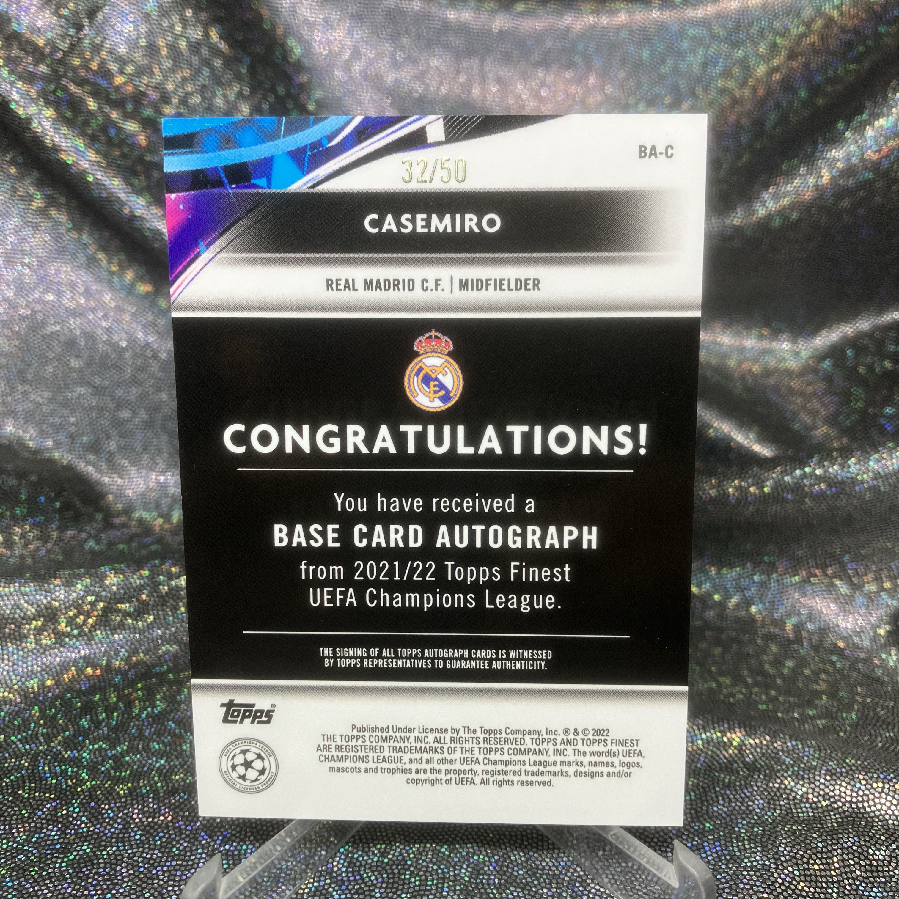 2021-22 Topps Finest Casemiro 卡塞米罗 胖虎 签字 50编 金折 少见皇马皮 皇家马德里 典礼中场 曼联 巴西 稀有皇马选图 收藏必备 完美墨迹 全签